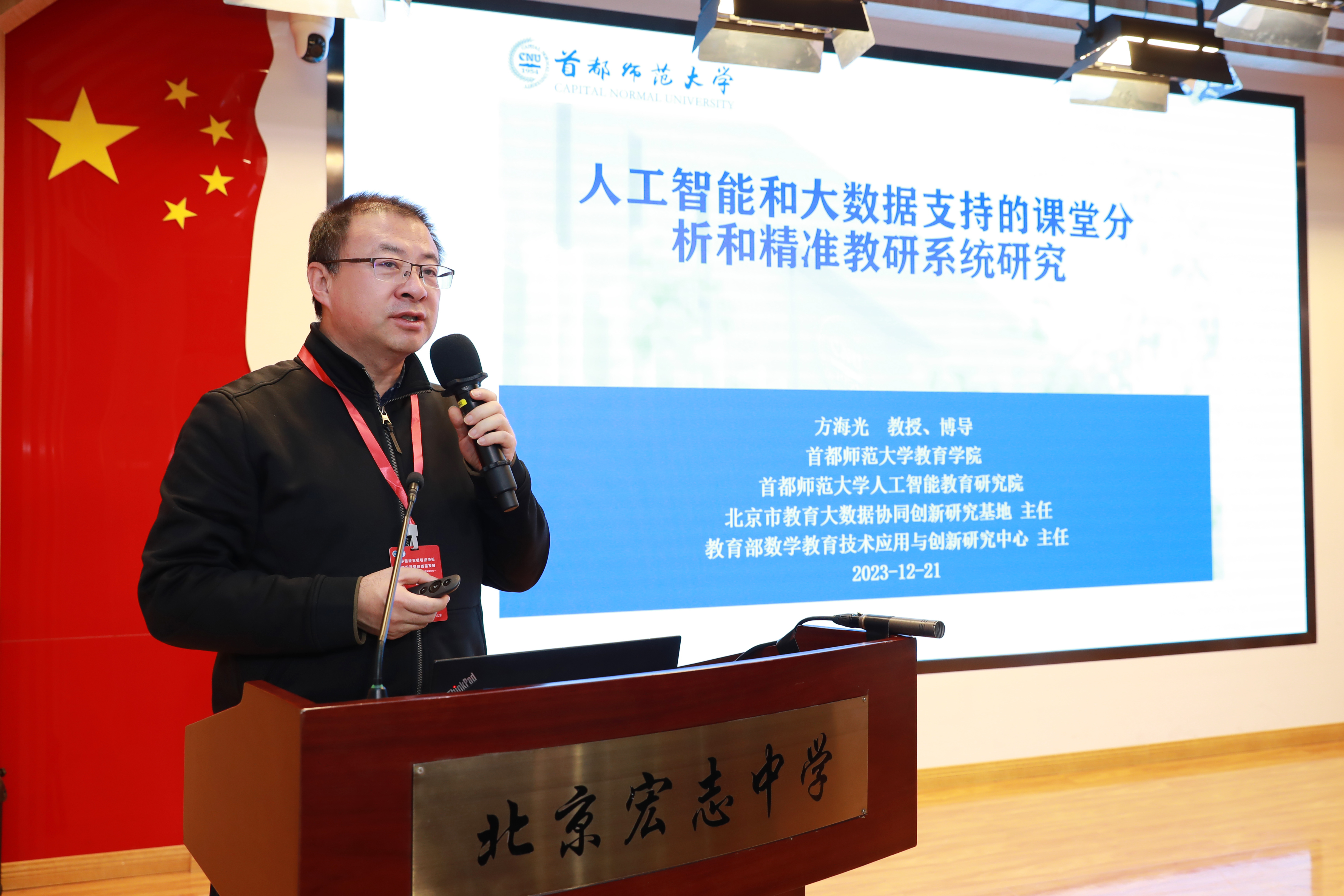 首都师范大学教育学院教授方海光带来了“人工智能和大数据支持的课堂分析和精准教研系统研究”。他认为,课堂观察的信息分析是教育大数据的基础和条件,通过使用智慧课堂人工智能分析系统,对教学案例不断提炼、对教学模式创新等,才能促进教师专业发展。
