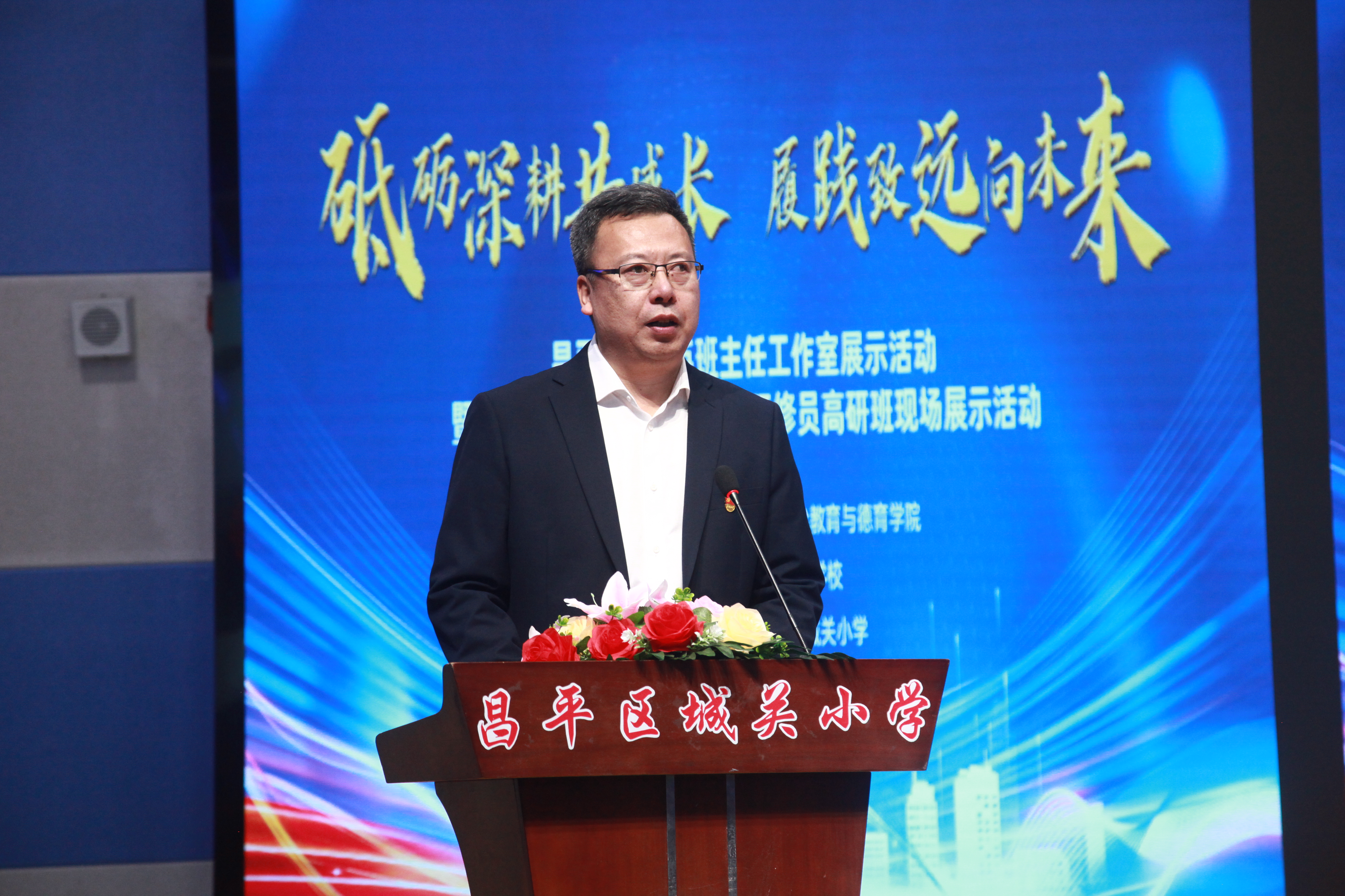 昌平区教师进修学校校长李岩在向莅临本次活动的来宾表示欢迎的同时,介绍昌平区德育工作是以“三生”德育工作为重点,以德育干部“春雨计划”、班主任育人能力提升工程、家校社协同育人工程和心理健康阳光工程为抓手,深入完善班主任工作室发展机制,改革创新工作室发展途径,扎实推进昌平班主任队伍建设。李校长肯定了邵红英班主任工作室研修成效显著,在全区发挥着辐射引领作用,期待今后班主任队伍发展的新突破,新作为。