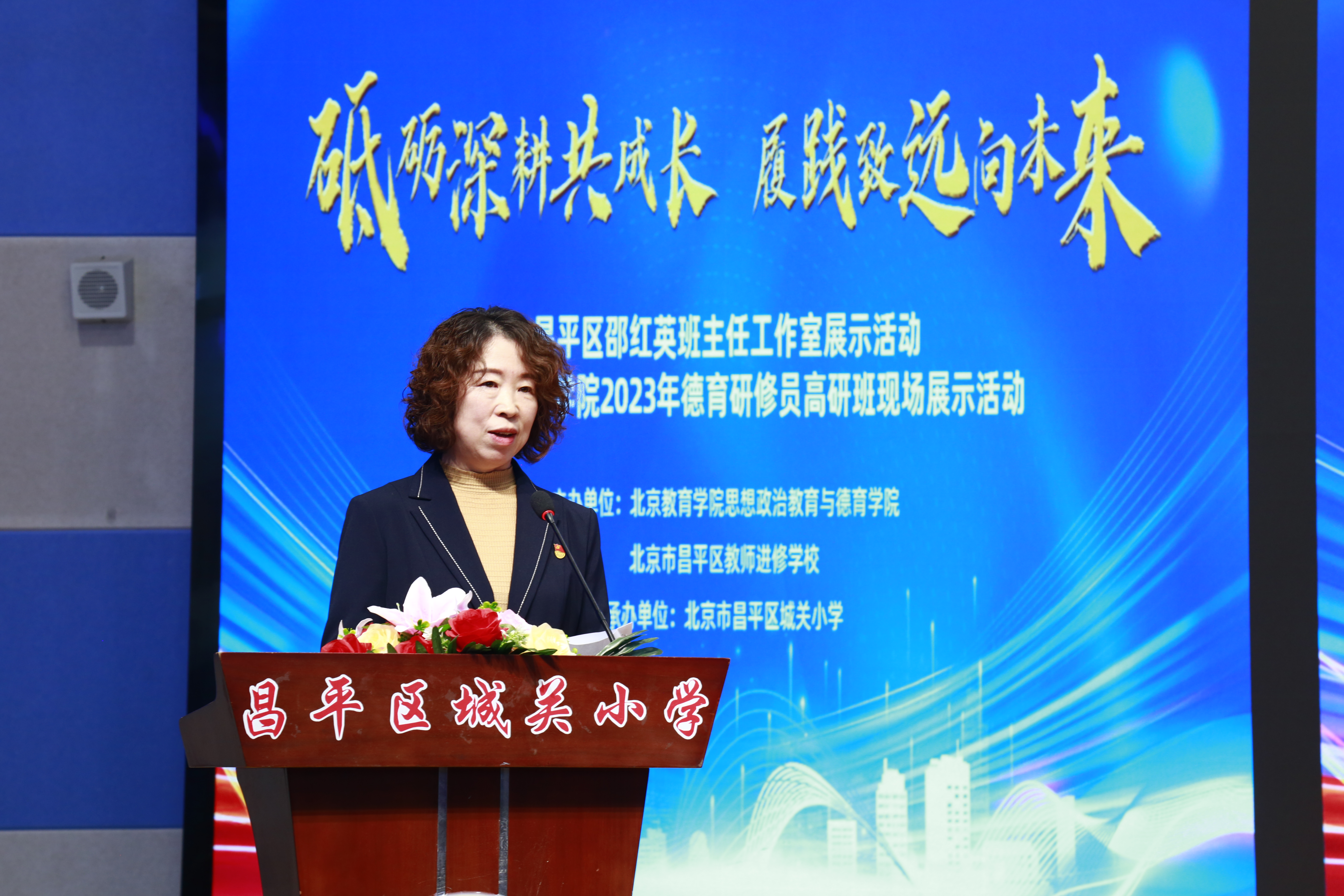 12月20日,“砥砺深耕共成长履践致远向未来——邵红英班主任工作室展示活动暨北京教育学院2023年德育研修员高研班现场展示活动”在昌平区城关小学顺利举行。此次活动由北京教育学院思想政治教育与德育学院、昌平区教师进修学校主办,昌平区城关小学承办,旨在进一步加强昌平区中小学班主任队伍建设,提升班主任工作专业化水平,充分发挥班主任工作室的引领、示范、辐射功能。