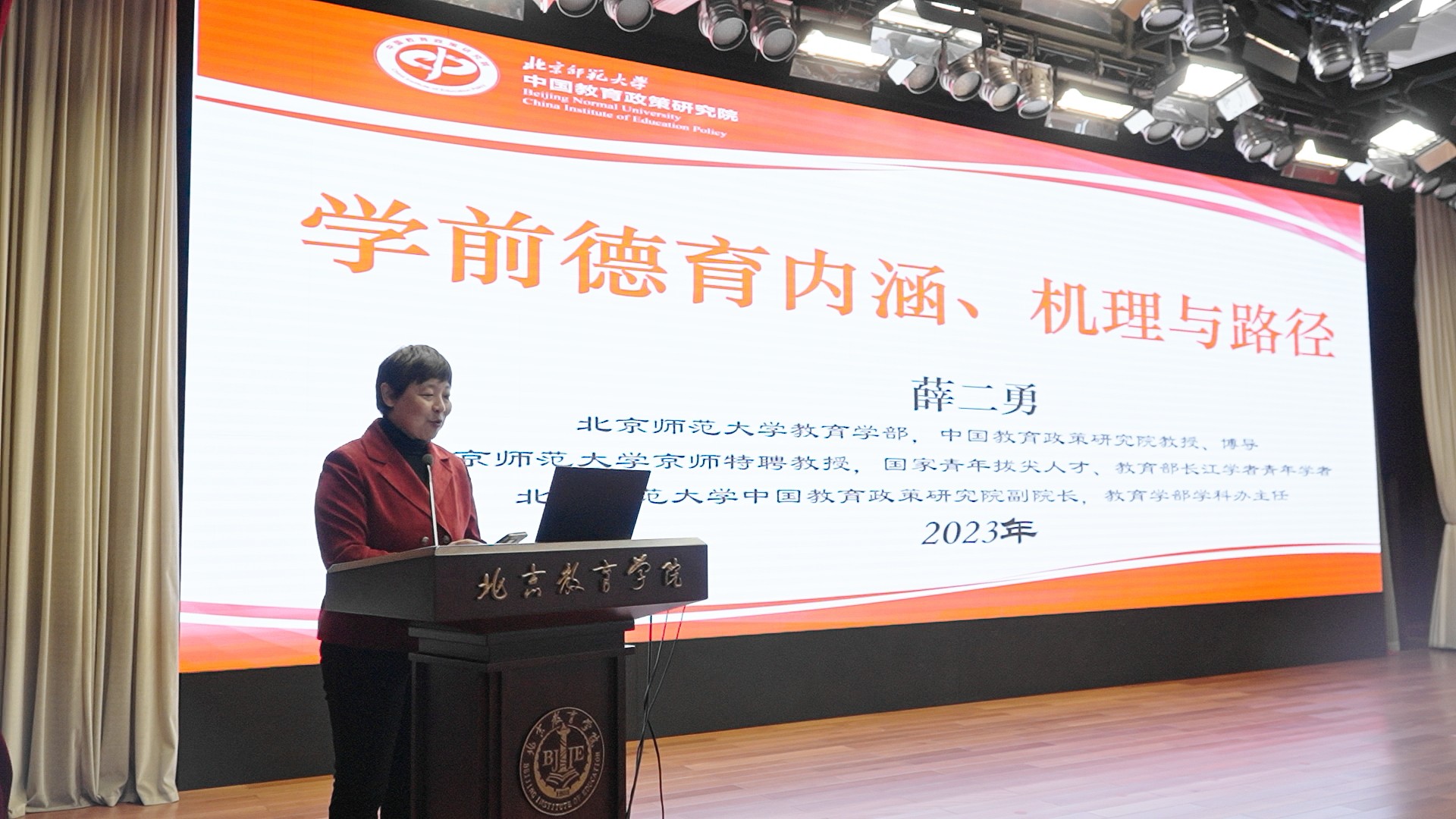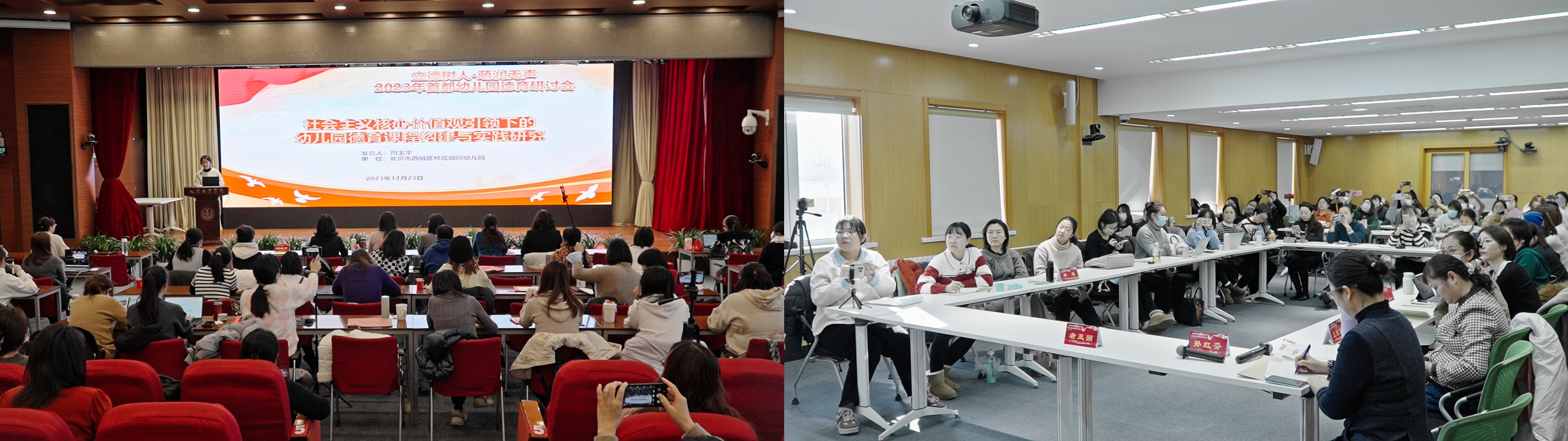 在以“立德树人”为根本教育目标的时代背景下,“高质量”学前教育实践路径的探索已成为当前的重要任务。2023年12月23日上午,北京教育学院学前教育学院在黄寺校区举办“立德树人• 萌润无声”2023 年首都幼儿园德育研讨会。本次研讨会与北京市学前儿童保教工作者协会、北京教育学院幼儿园文化与环境创设研究中心、北京教育学院幼儿德育美育研究中心联合主办。来自北京市十六区近300人参加了研讨会。