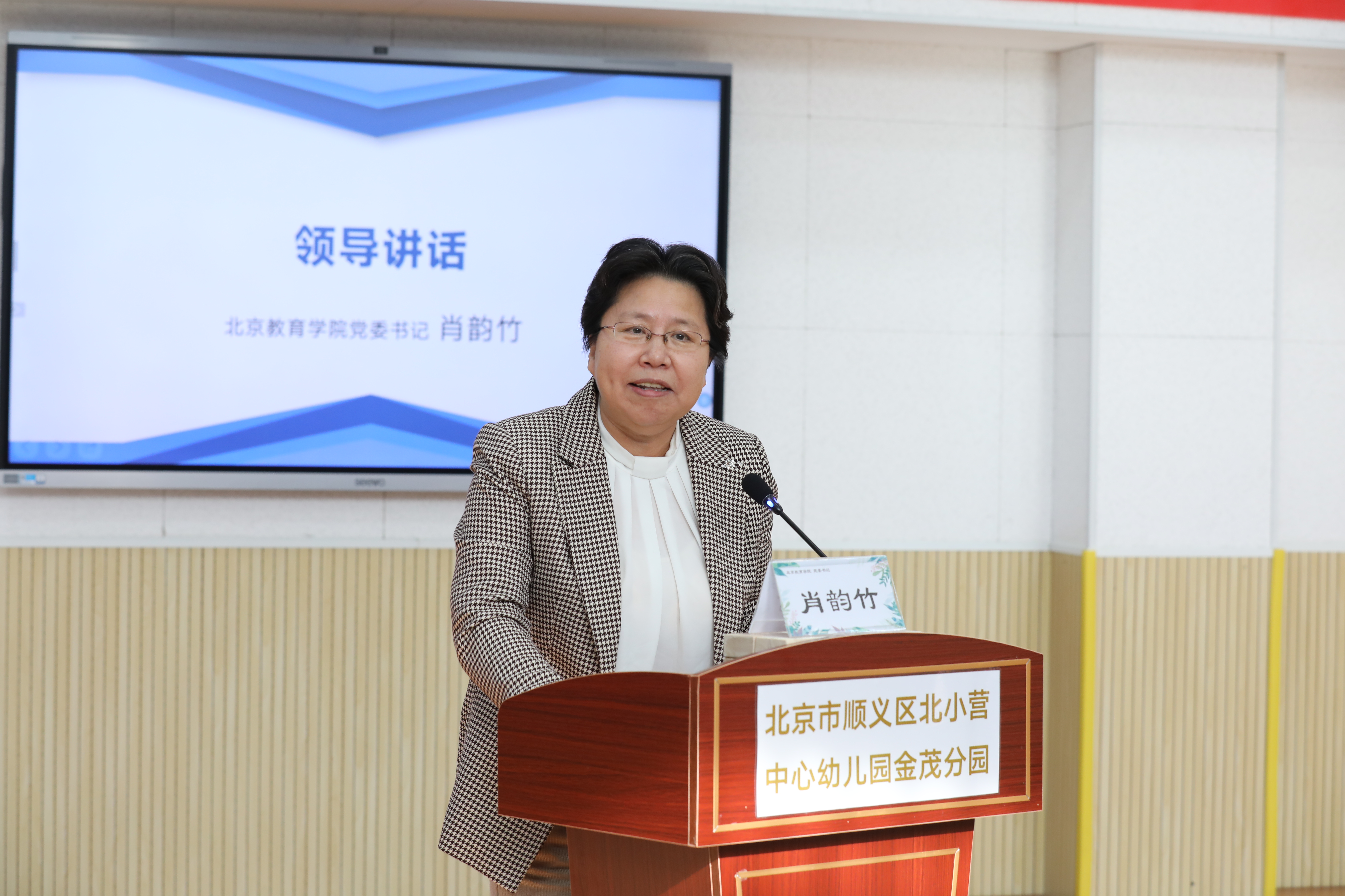 12月26日,北京教育学院“教育改革特色专题培训”项目——“播种爱”幼儿生活题材歌曲兴趣创作实践培训(顺义,密云)在顺义区北小营中心幼儿园金茂分园顺利结业。北京教育学院党委书记肖韵竹出席了结业展示活动。顺义区教育委员会副主任蒋吉姝、顺义区教育研究和教师研修中心主任张军堂、副主任徐秋生、密云区教师研修学院副院长许静、北京教育学院学前教育学院党总支书记李炬、顺义区教委学前教育科科长冯永建、顺义区学前教研室主任王晓鸿以及顺义区、密云区的部分学前教研室研修员也参加了结业仪式。结业展示活动由顺义区学前教育研修员王红超主持。