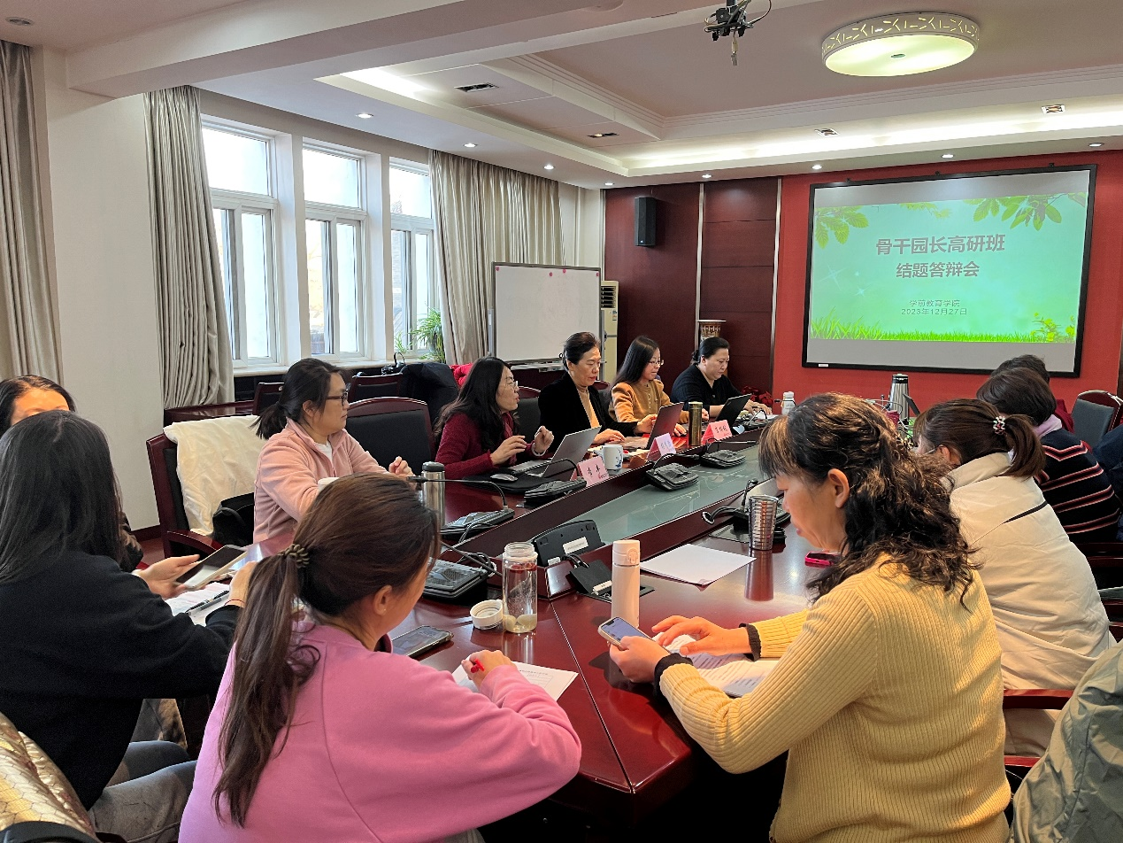骨干园长高研班21位学员在项目班带领下顺利推进课题研究。前期组织并完成了21个课题的开题答辩、五次课题推进指导、中期汇报。结题答辩中,21位学员分别从选题背景、研究意义、文献综述、研究设计、研究成果、研究结论、研究下一步思考对各自课题进行陈述,专家评委分别对21项研究给出肯定并提出有针对性的中肯的意见,鼓励学员将研究持续开展下去。经专家评委审议,21项课题分别获得优秀、良好成绩。