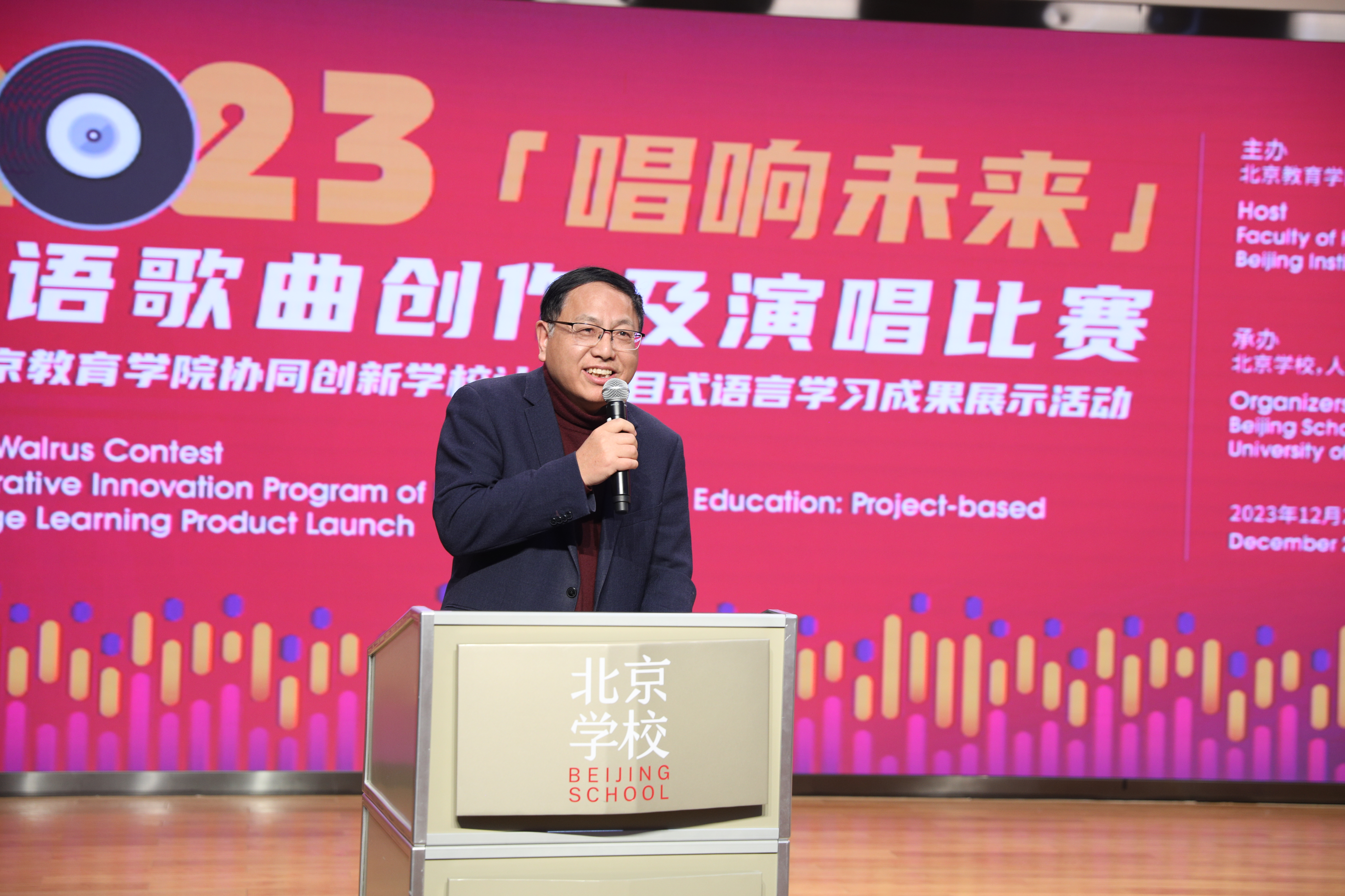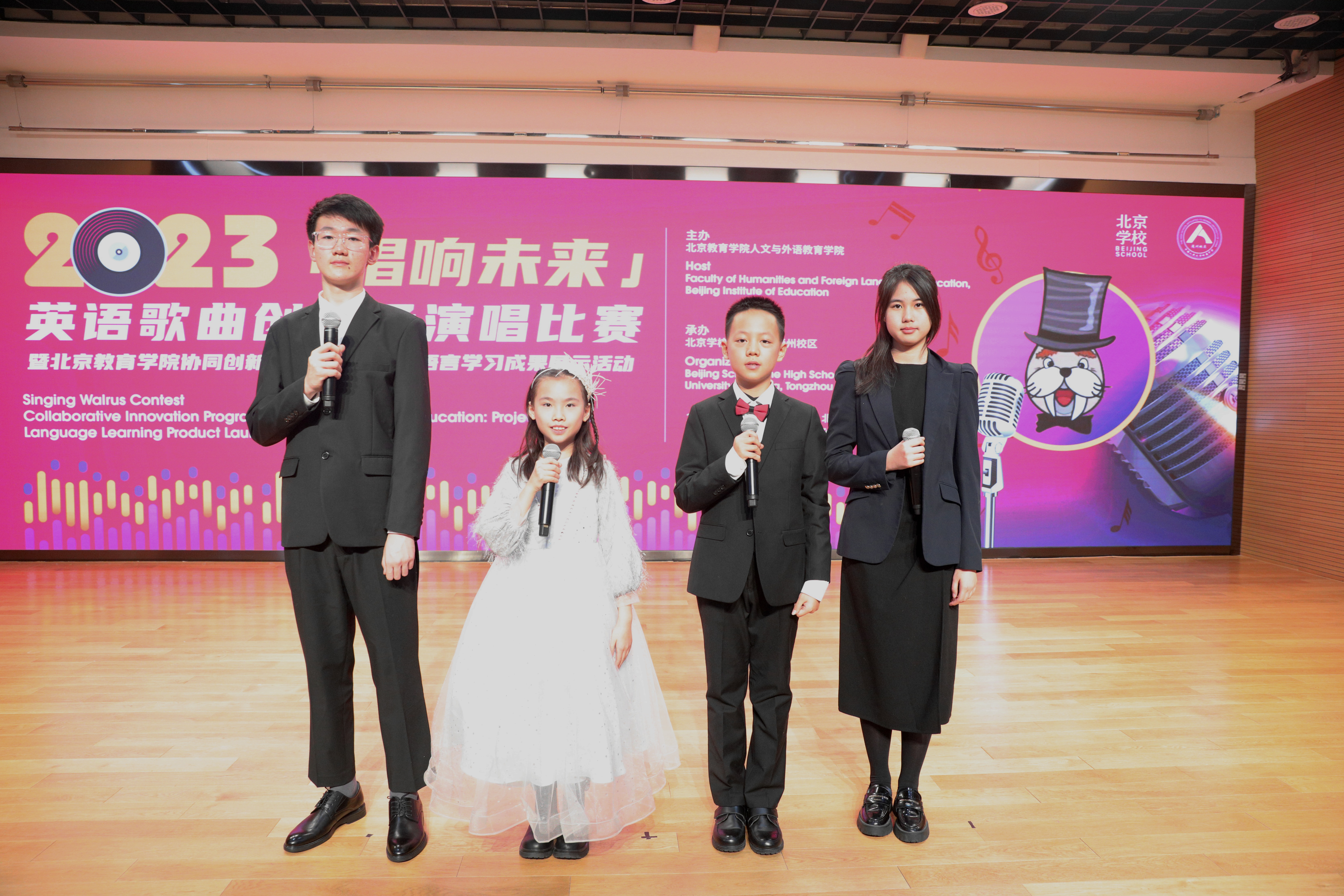 2023年12月26日下午,“2023‘唱响未来’英语歌曲创作及演唱比赛”北京教育学院协同创新项目式语言学习成果发布活动在北京学校成功举办。北京学校、人大附中通州校区一至十一年级的学生参与英语歌曲创作项目,在比赛中展示了他们结合单元主题学习合作创作的歌词,并发布了项目式语言学习成果。