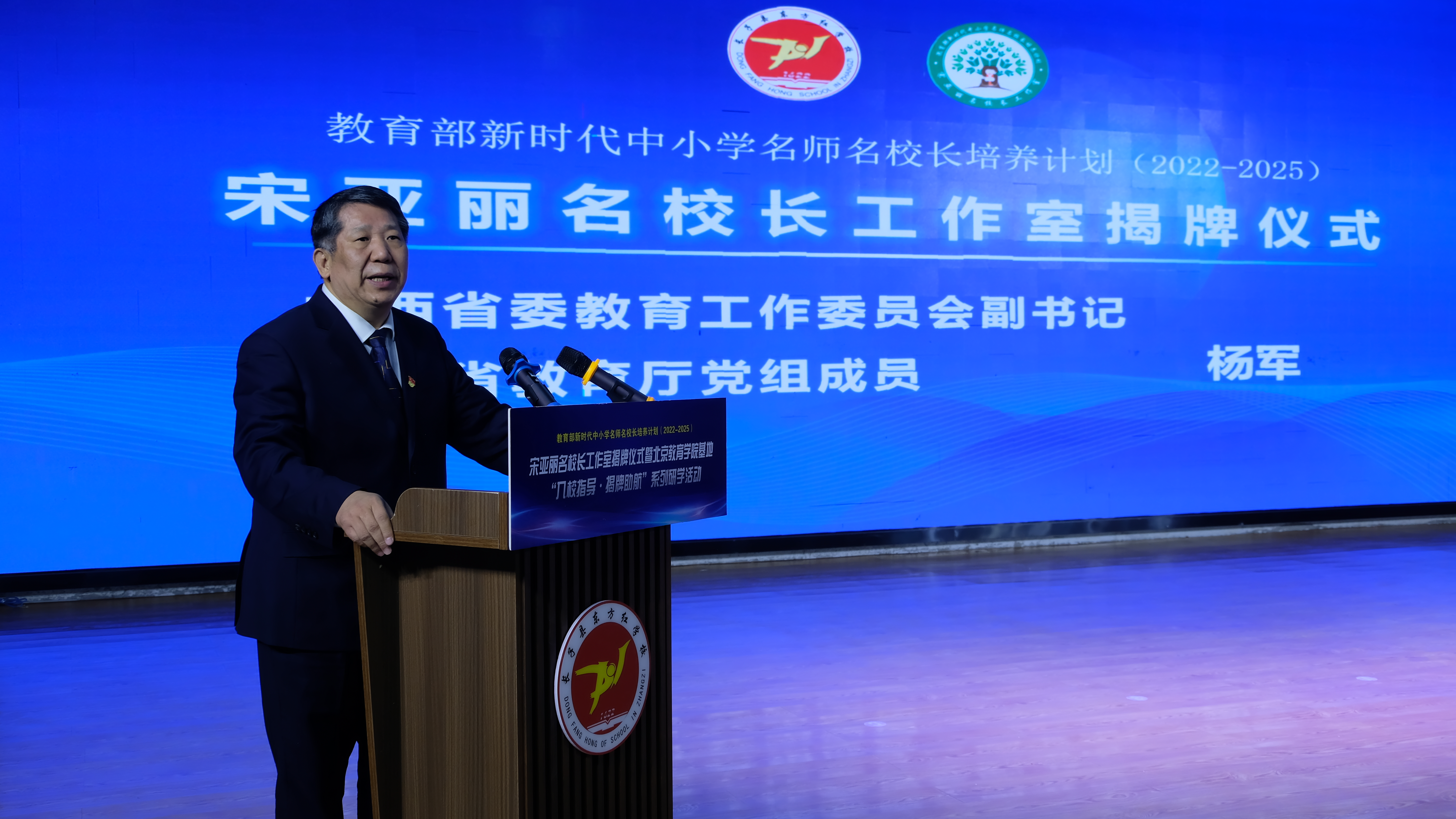 杨军代表省委教育工委、省教育厅向宋亚丽名校长工作室顺利揭牌表示祝贺。他表示,省教育厅对于名校长培养工作尤为重视。校长是教育领域内的关键少数,名校长培养是重要的工作抓手,通过好校长带出好老师,通过好老师培养一代又一代的好学生。他希望名校长工作室成员发挥辐射引领作用,并预祝工作室硕果累累。