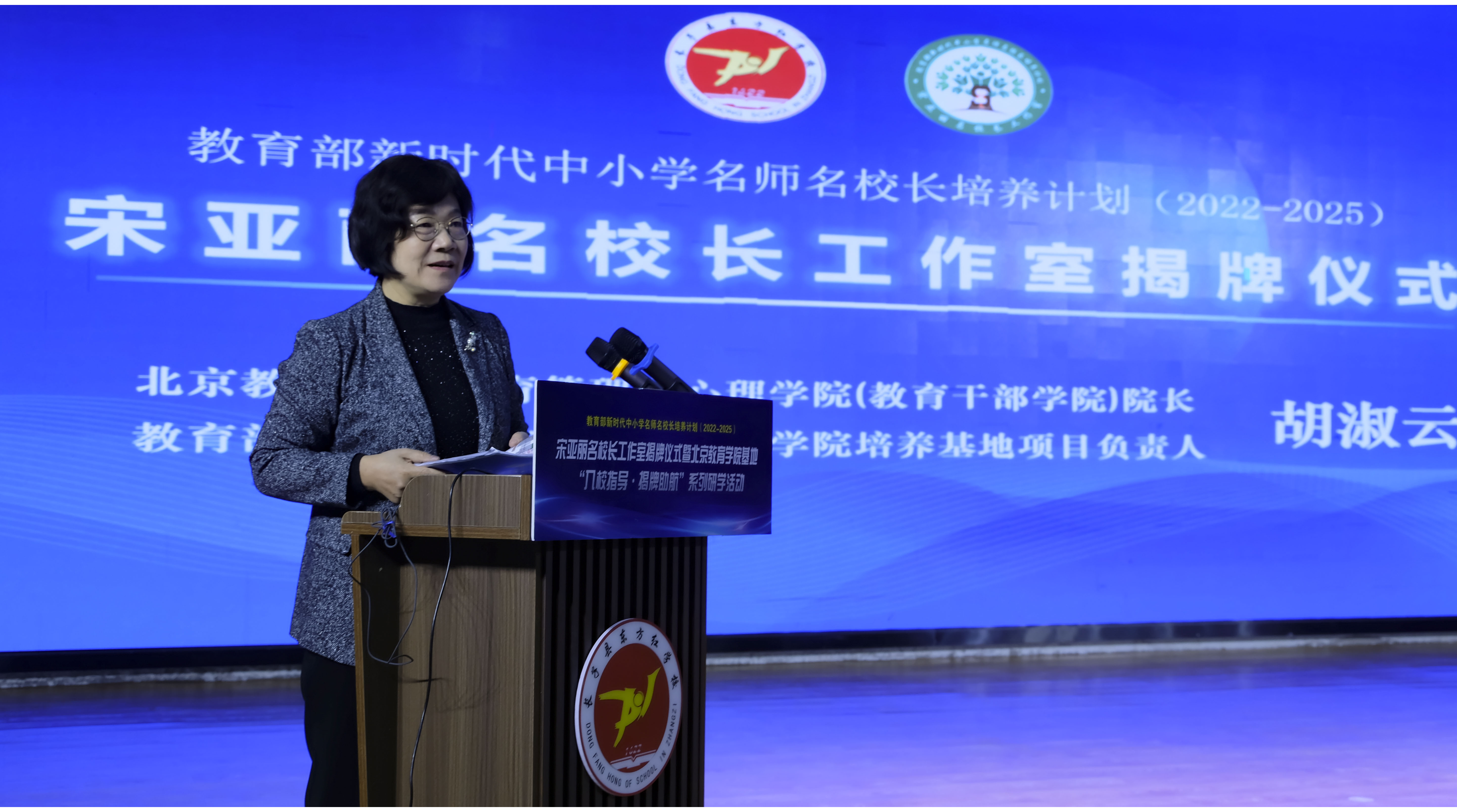 宋亚丽作为名校长工作室主持人作表态发言,她代表东方红学校对大家的远道而来表示诚挚感谢。她表示,国家省市县各级政府为名校长的成长搭建了重要平台,作为教育部“双名计划”的一员深感幸运,也备感责任重大。在北京教育学院的专业引领、导师的敬业指导之下,自己一定带领工作室成员潜心问道,深耕钻研,为成为为学、为事、为人的大先生而努力,为我国教育高质量发展作出贡献。
