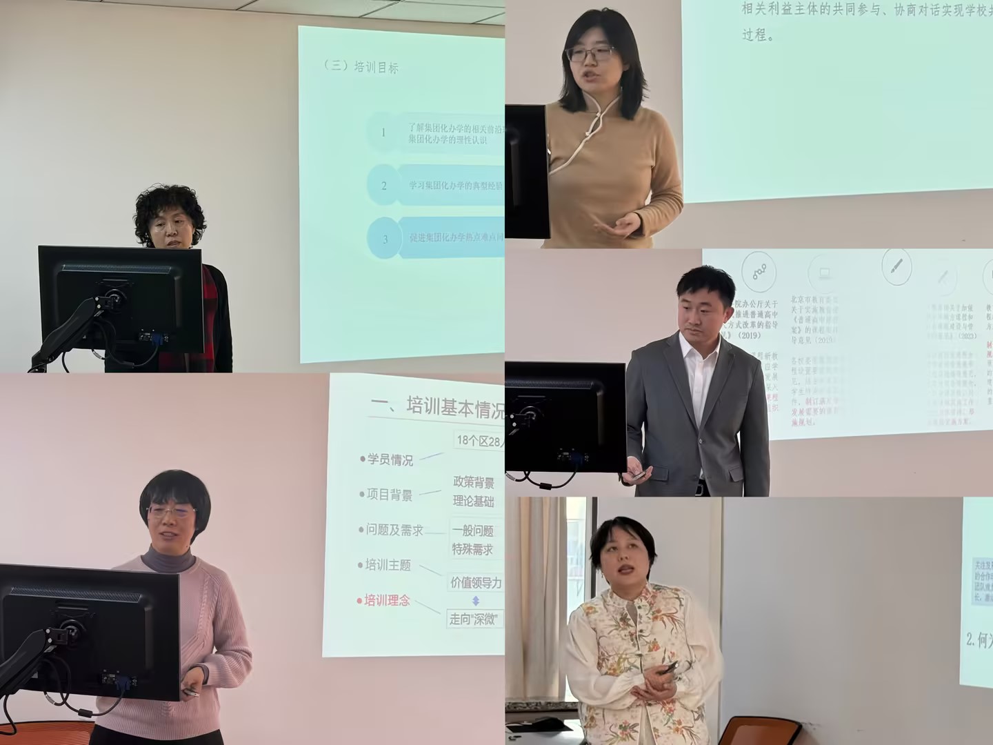 13个结业验收项目涉及市级教育改革专题项目、国培项目和援培项目三大类。各项目负责人分别从项目目标和成果、培训实施过程、培训模式和特色活动、培训经验与反思、学员成长过程等方面进行汇报,并就评审专家提出的问题与专家们进行了深入交流。