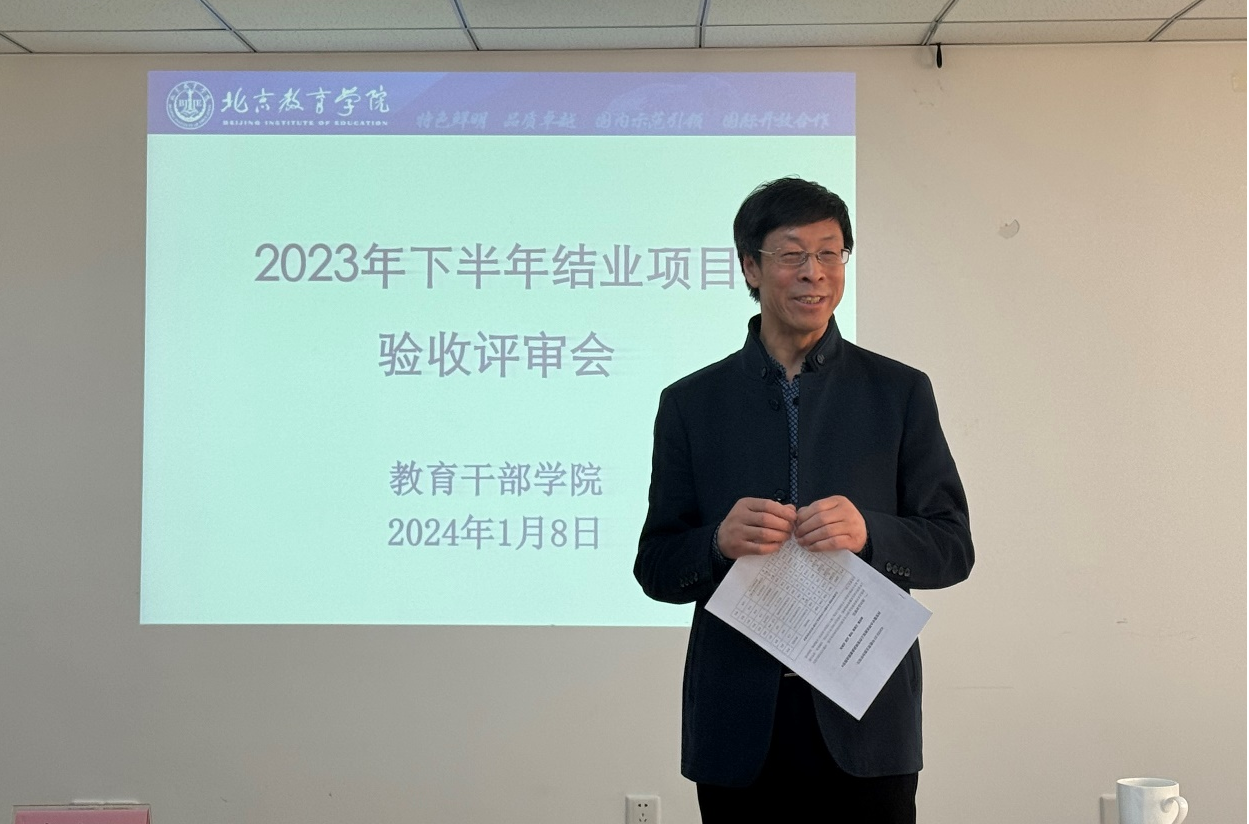 此次结业项目验收评审,既是教育干部学院对2023年培训成果的总结和培训经验的分享,也是一次集体研讨、相互学习、共同成长的院本培训,更是2024年承前启后、上下贯通、创新发展的重要序章。新的一年,教育干部学院将一如既往、不断前行,为北京教育学院的发展贡献自己的力量。