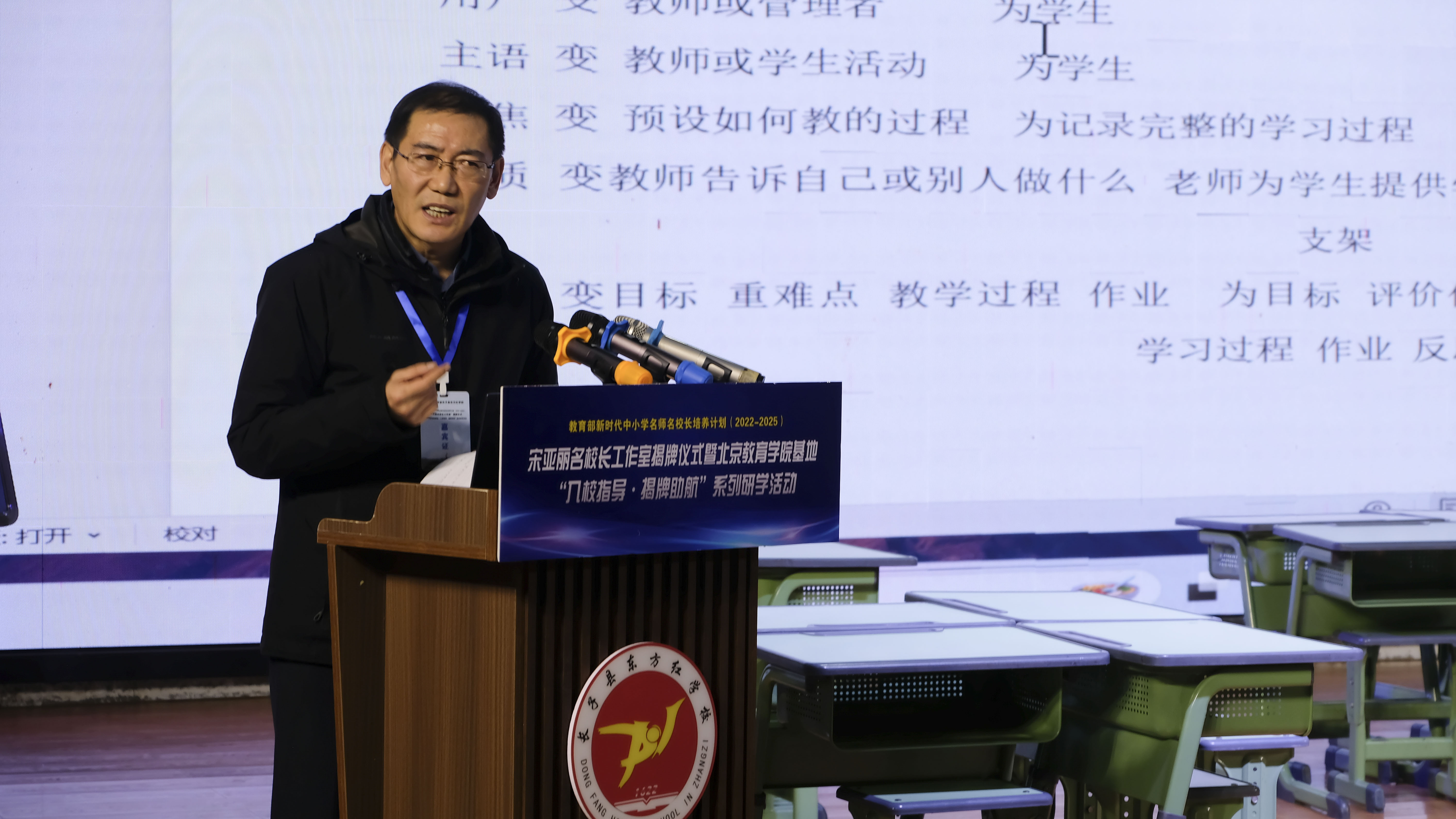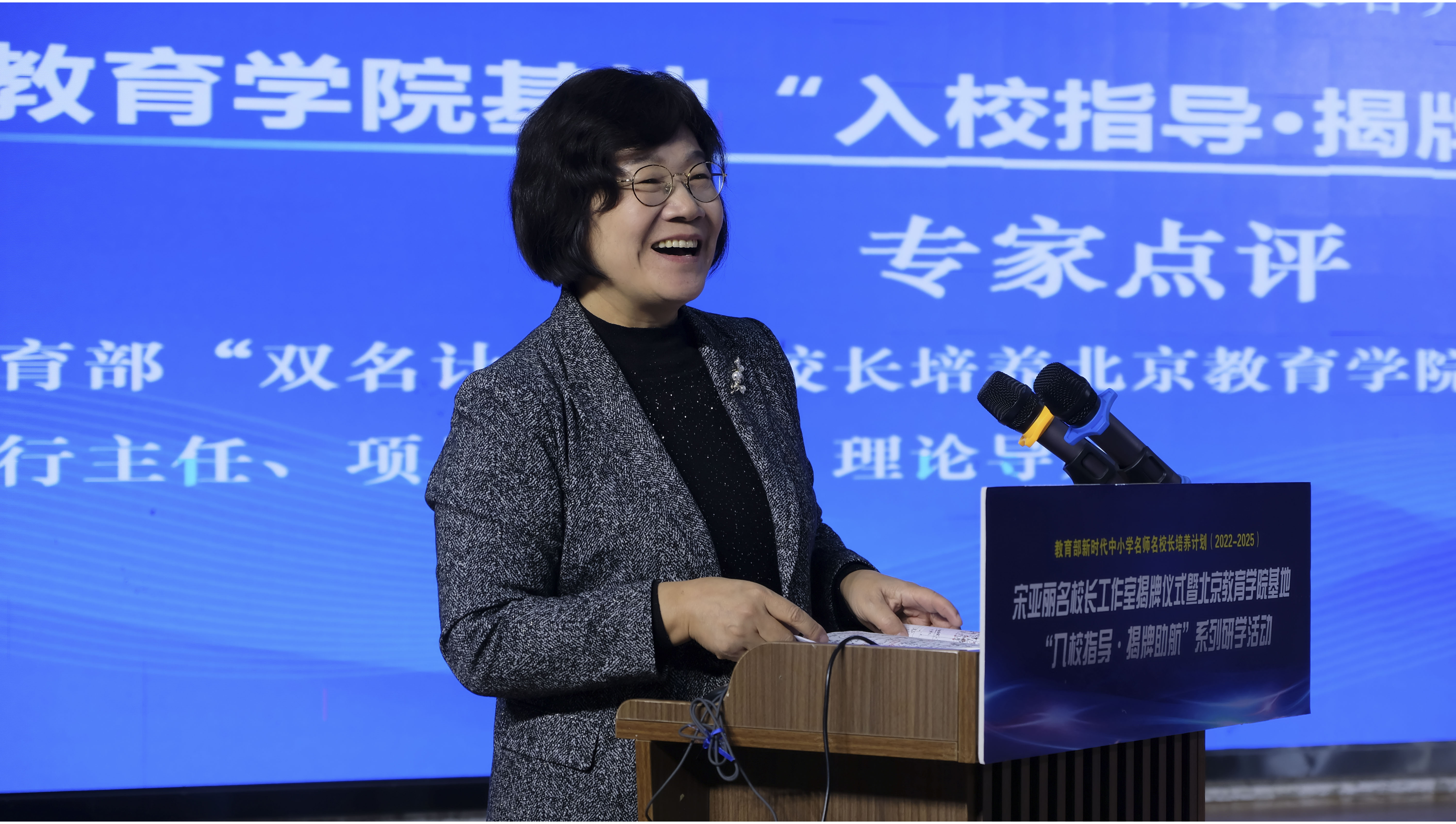最后,胡淑云教授作了点评和总结。她指出“入校指导·揭牌助航”系列研学活动是北京教育学院基地为“双名计划”名校长学员设计的14个课程模块之一。该课程秉持学员亦资源、基地和在地资源联动、让研学在现场真实发生等培训理念,以校际互访、同伴互助、现场研学、案例教学、入校指导等多种方式推进,是北京教育学院基地贯彻落实教育部“双名计划”部署、体现北京教育学院专业品质、发挥辐射作用的重要举措。她对宋亚丽校长为本次活动提供的研学现场和丰富的案例素材、对省市县有关领导和专家给予的大力支持致以诚挚谢意。