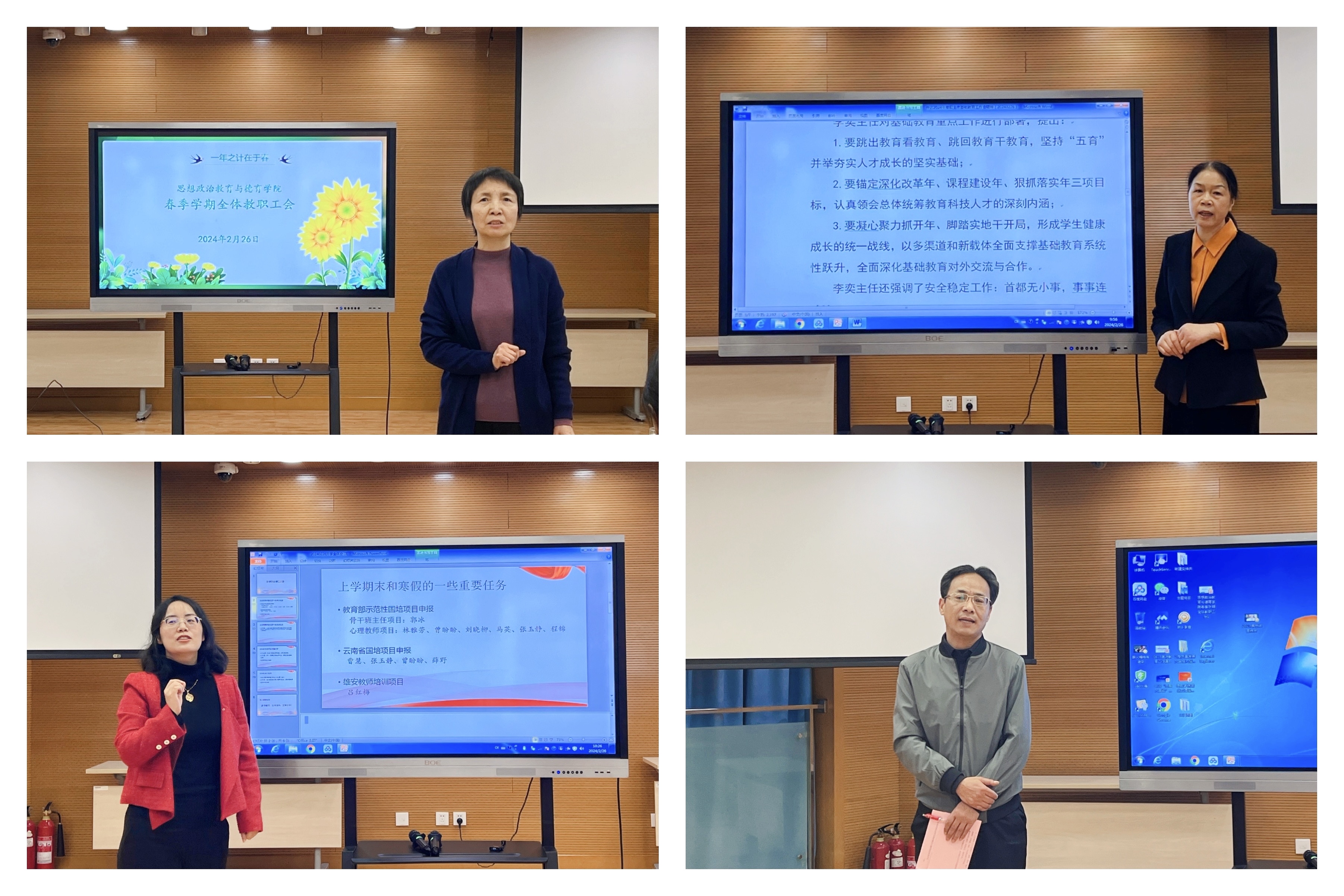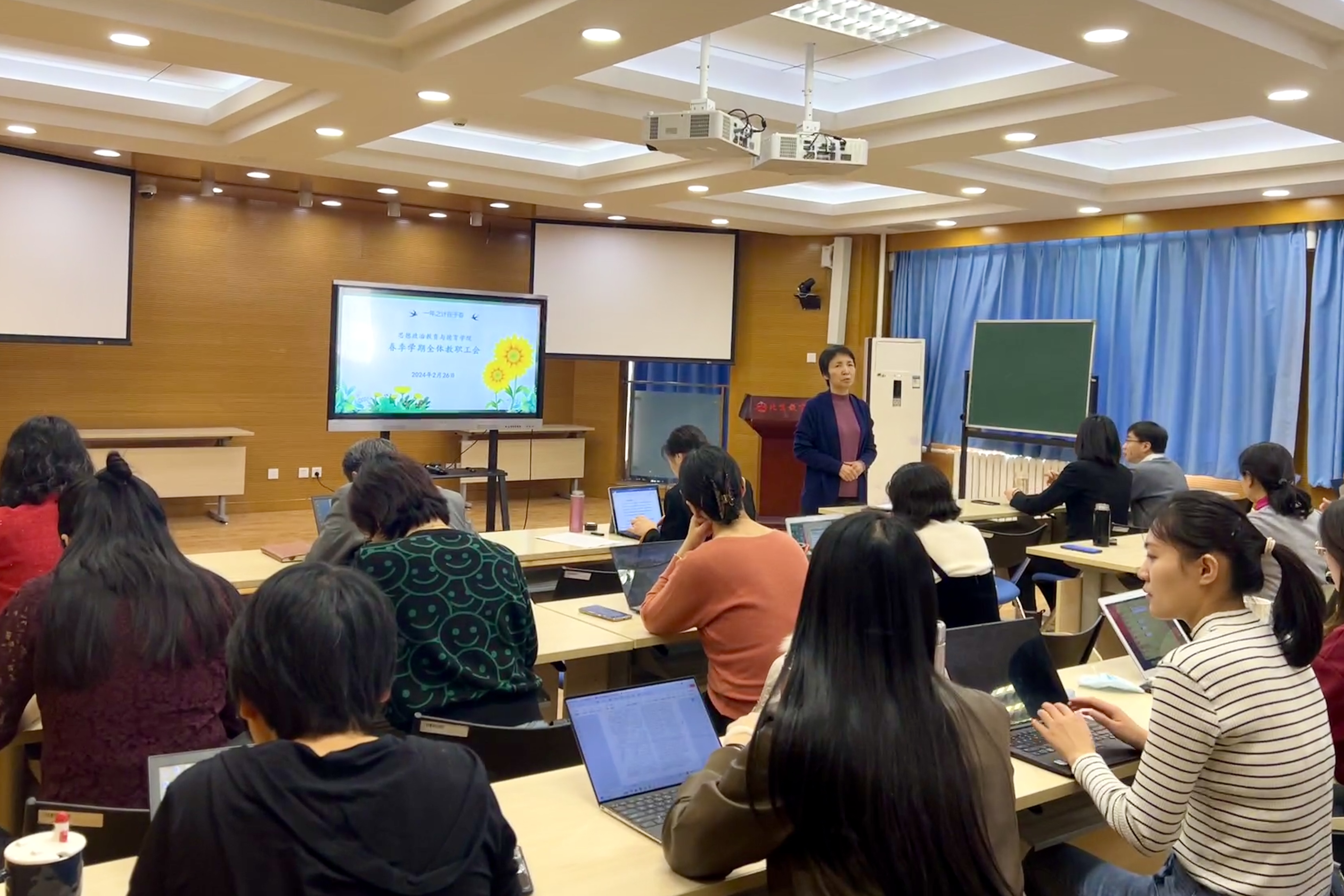 为新学期高质量发展开好局、起好步,2月26日上午,思想政治教育与德育学院召开了2024年春季学期第一次全体教职工会。会议由思政学院党总支书记李淑君主持。