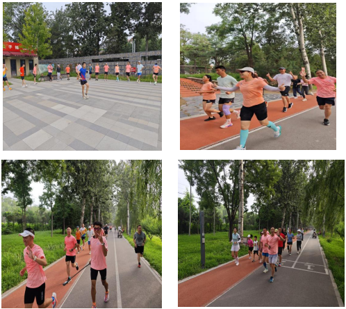 活动第一环节,成员们集聚龙潭中湖公园,在跑团刘萌团长组织下,在北京马拉松协会赵福明会长带领下,集体进行了跑前预热激活和动态抻拉练习,分5个配速组开启了2.5-7.5公里不等的晨跑,最后在赵会长组织的拉伸放松和交互按摩中结束了晨跑实训。在轻松愉悦氛围中,大家边跑边交流,畅谈着工作、生活和家庭日常,分享着难得的轻松与快乐,仿佛又回到了平时组织学生时开心的课堂场景。