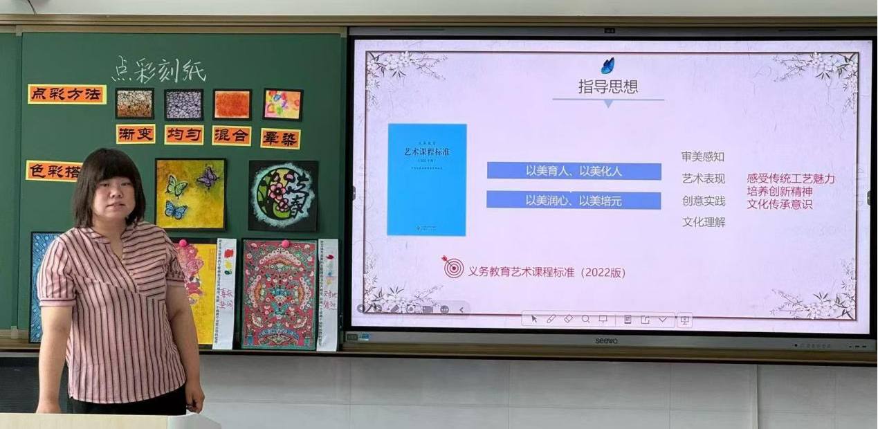 展示活动的压轴环节,教研员刘杰老师带来专题微讲座,聚焦新课标下小学美术教学重难点的突破策略。她提出以"具身认知理论"为指导,强调通过身体参与深化审美体验;融合多元智能理论实施差异化教学;注重传统文化的创造性转化与创新性发展;倡导构建"无感体验-情境实践-动态评价"三维协同教学模式,为提升美育教学质量提供了系统解决方案。