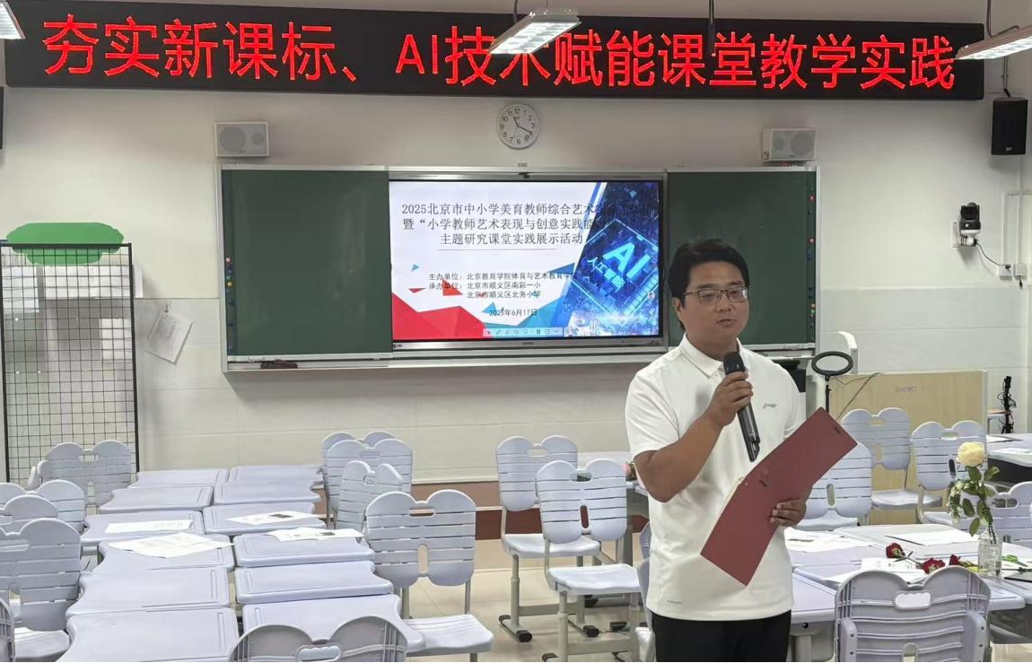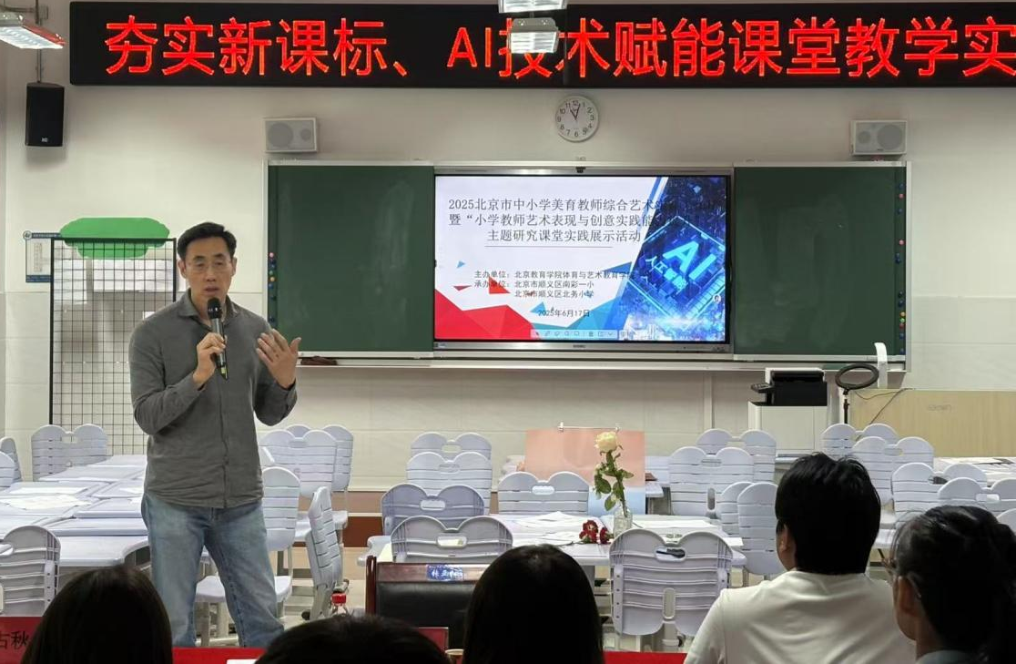 2025北京市中小学美育教师综合艺术实践工作坊——"小学教师艺术表现与创意实践能力提升"主题研究课堂实践展示活动,在南彩第一小学举行。首都师范大学吕鹏教授、北京教育学院马小虎老师,顺义区教育研究和教师研修中心美术教研员刘杰老师,顺义区北务小学王占秋校长、南彩第一小学沈浩发校长、侯燕强副校长等领导专家,与来自市区两级的60余名美术教师齐聚一堂,共同开启这场美育教学的创新之旅。