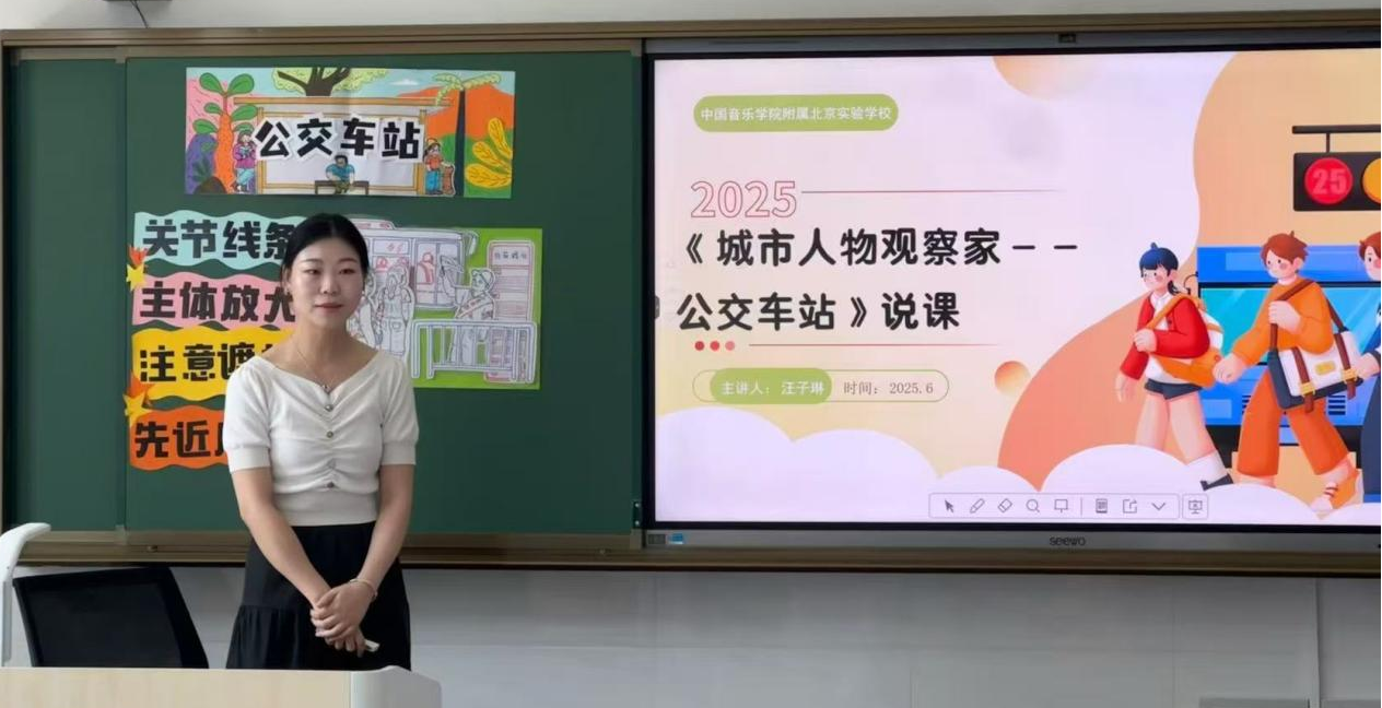 中国音乐学院附属北京实验学校汪子琳老师的《公交车站》说课,围绕核心素养目标,创新课程设计。四站式情境、绘本式展示、AI赋能等教学策略的运用,充分体现了以学生为中心的教学理念,实现艺术教育与品德教育的有机融合。