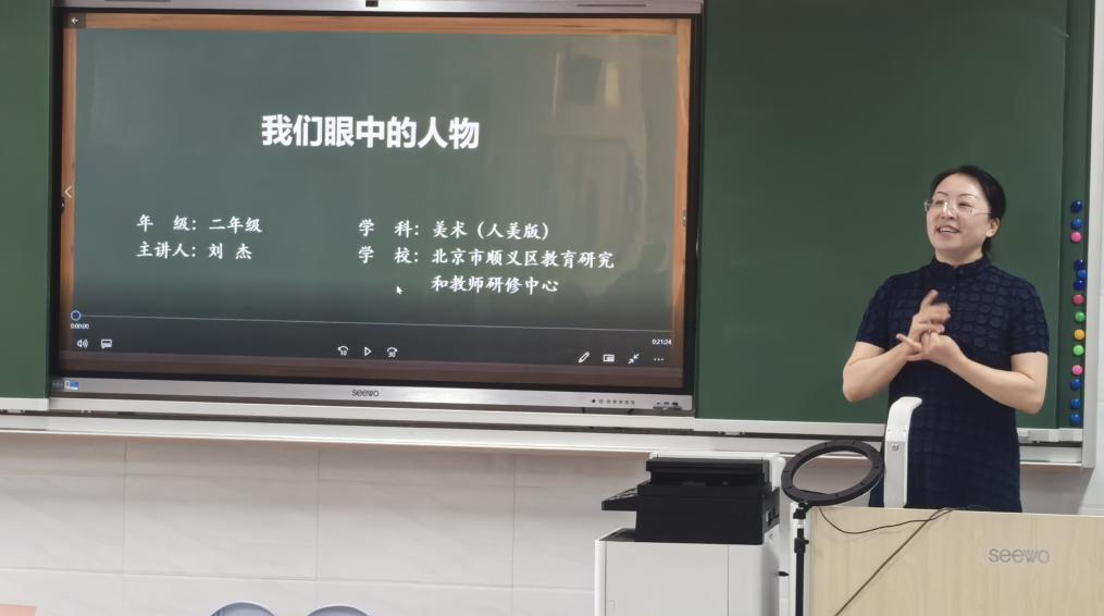 活动在顺义区美术教研员刘杰老师带来的二年级《我们眼中的人物》说课中拉开序幕。刘老师以经典艺术作品为引,带领与会教师走进人物画的艺术世界。通过深度剖析达芬奇《蒙娜丽莎》的神秘微笑、雷诺阿《小艾琳》的细腻笔触,系统讲解从色彩运用、构图设计到细节刻画的艺术赏析方法;同时深入阐释中国画的笔墨神韵与三角形构图法则,强调在艺术实践中传承中华优秀传统文化的重要性,为后续教学展示奠定坚实理论基础。