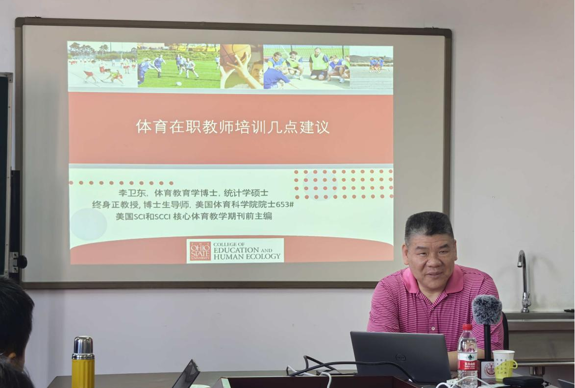 6月23日,美国俄亥俄州立大学李卫东教授受体艺学院院长潘建芬邀请,开展题为“美国体育教师培养与职后发展”的专题讲座。本次讲座面向全系教师、一线体育教师及体育教研员,深度解析了体育教学的核心矛盾与实践路径,为体育课程改革、体育教学创新提供国际化视野与本土化解决方案。讲座由体育与艺术教育学院潘建芬院长主持。