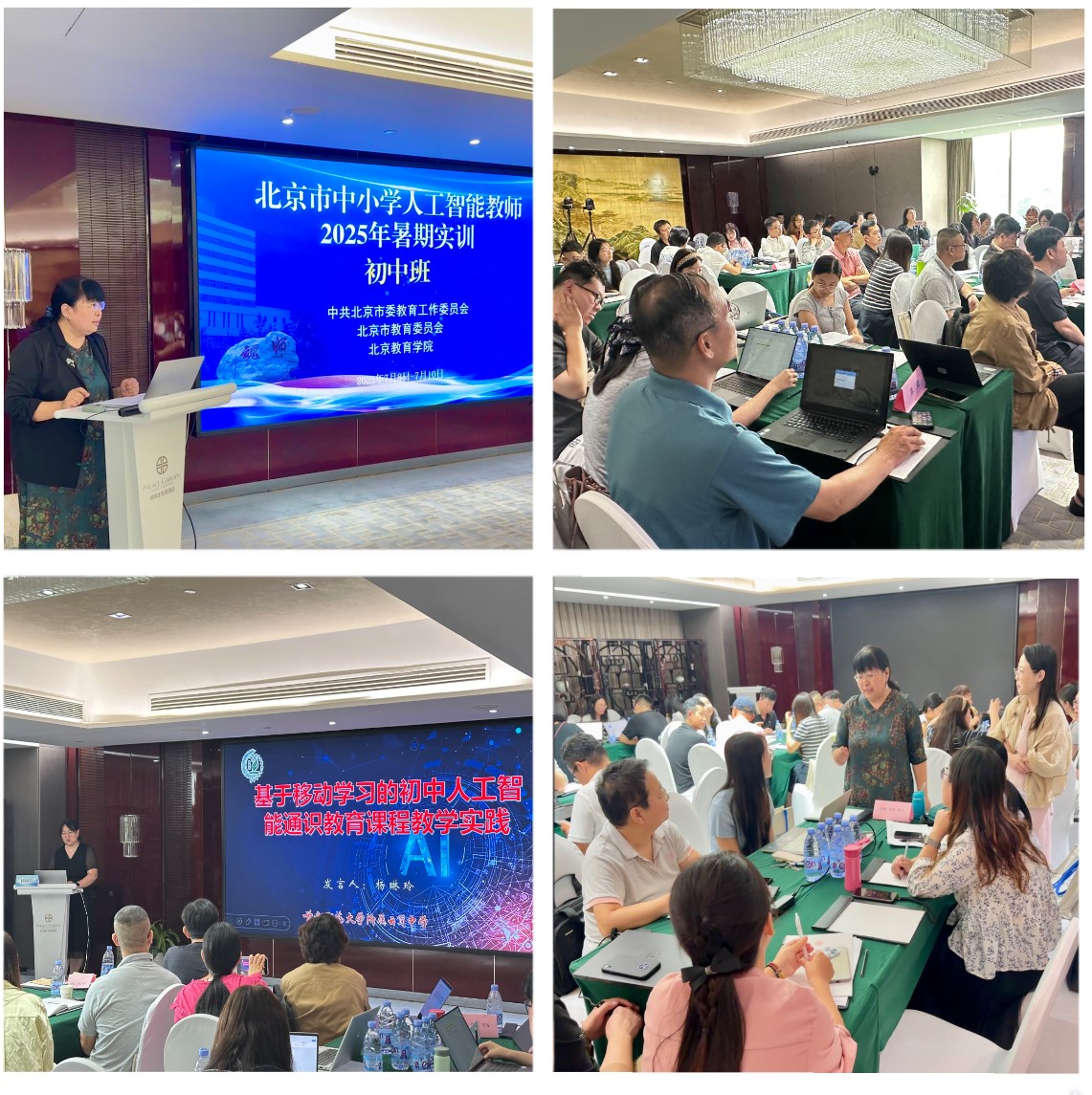 为深入贯彻落实《教育强国建设规划纲要(2024—2035年)》和全国教育大会精神,全面落实《北京市推进中小学人工智能教育工作方案(2025-2027年)》《北京市中小学人工智能教育地方课程纲要(试行)(2025年版)》的要求,北京市中小学人工智能教师2025年暑期实训项目于2025年7月8日在北京正式启动。本次实训由中共北京市委教育工作委员会、北京市教育委员会、北京教育学院主办,旨在为2025年秋季全市中小学全面开设人工智能通识教育课程提供坚实的课程及师资支撑。经市教委统一部署,各区结合实际,从拟承担中小学人工智能通识课程教学任务的骨干教师和教研员中精心遴选推荐出130名学员集结参训,覆盖基础教育全学段。