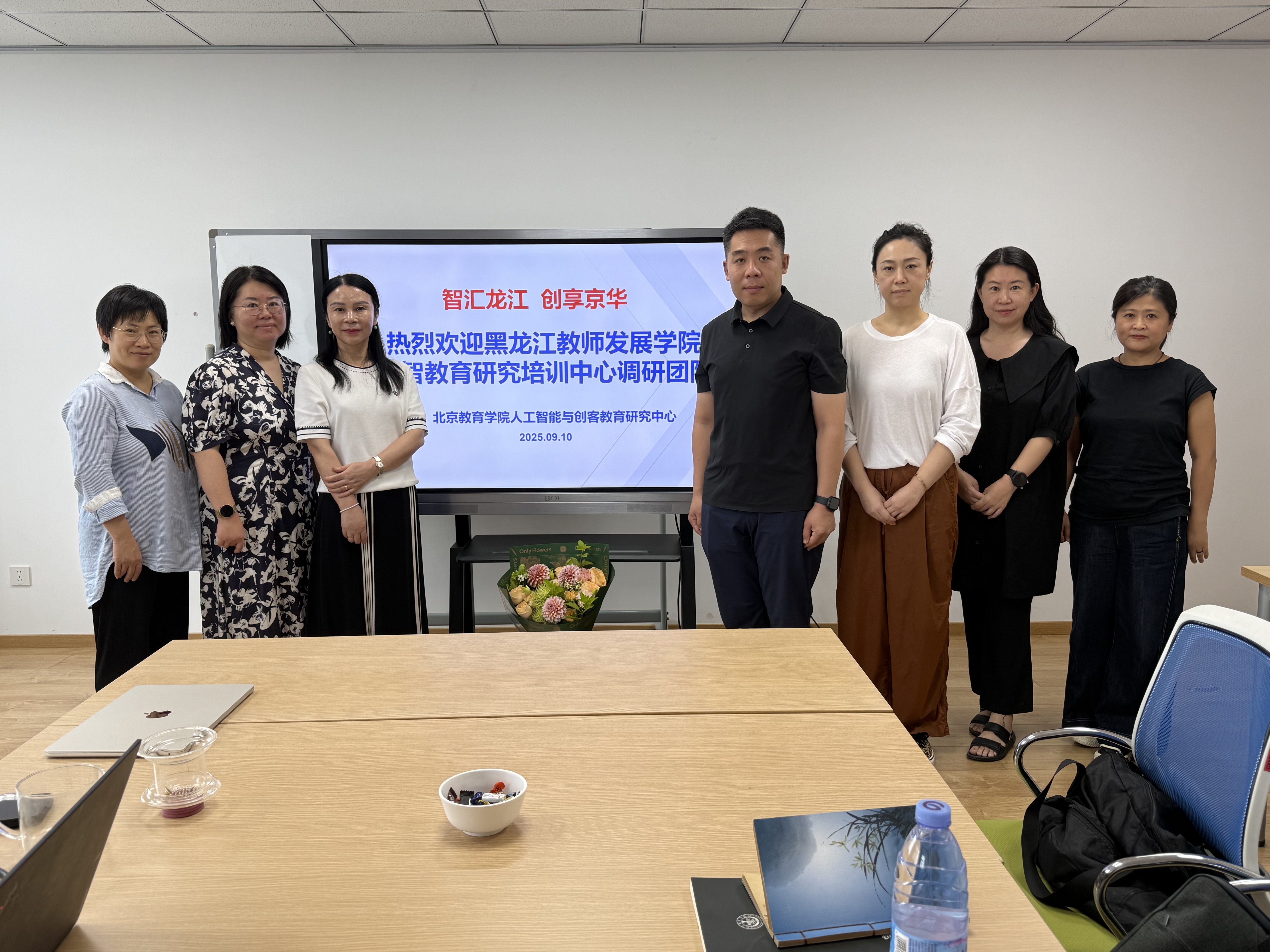 2025年9月10日下午,黑龙江教师发展学院数智教育研究培训中心副主任张天扬、教研室主任付明明、教研员申一頔、赵炳蔚一行来访我院人工智能和创客教育研究中心,信息科技教育学院于晓雅教授、秦昆副教授、张香玲博士就中小学人工智能教育实施路径与策略展开深入研讨交流。