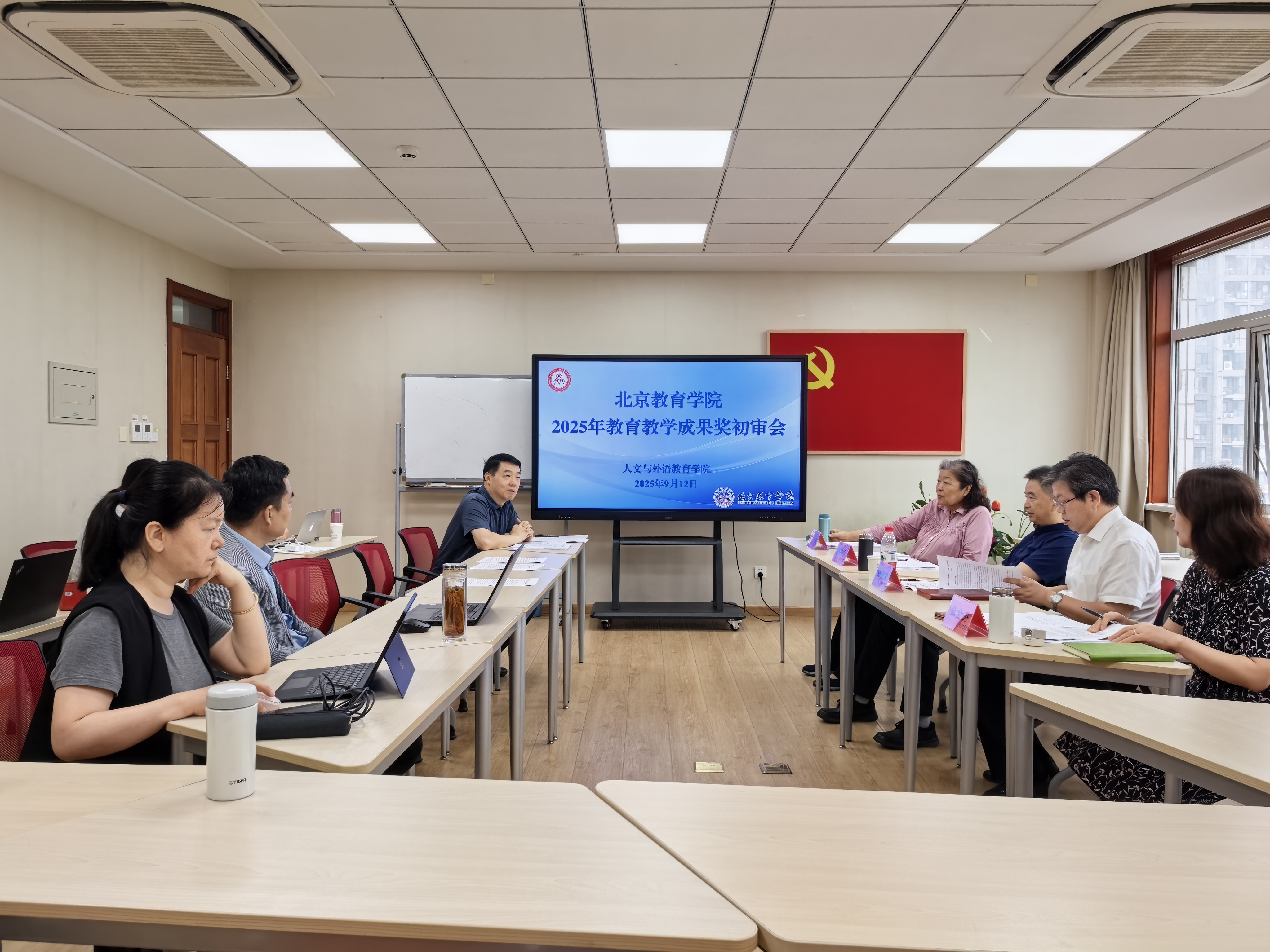 为严把教育教学成果奖申报质量关,助力成果精准提炼、凸显特色,2025年9月12日,人文与外语教育学院召开2025年教育教学成果奖申报初审会。会议邀请原北京教育科学研究院副院长、教授钟祖荣,原北京教育学院教授李晶,北京师范大学教授胡定荣三位专家组成评审专家组,对拟申报的2项基础教育成果和1项高等教育成果进行专业评审。教务处处长张金秀教授莅临指导。人文学院院长邸磊主持会议。