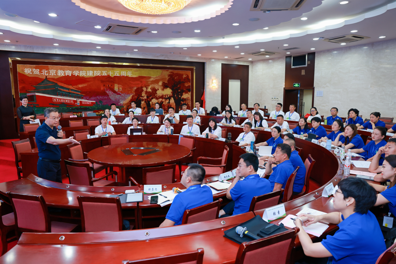 肖汶副院长向全体学员的到来表示热烈欢迎,他介绍了北京教育学院70多年的培训历史和取得的重要成绩,本次项目是北京教育学院在全国遴选的20家影子培训项目承担院校之一。他强调,教学领导力是校长在“三新”改革下的必备能力,是推动内涵发展的重要保障,要求校长在研修中强化问题意识,促进研修成果向办学实践的迁移转化。最后,他对学员提出了三方面的研修目标要求:一是在学习中升华教育理念,二是在实践中激发学校办学活力,三是在担当中彰显校长的价值。