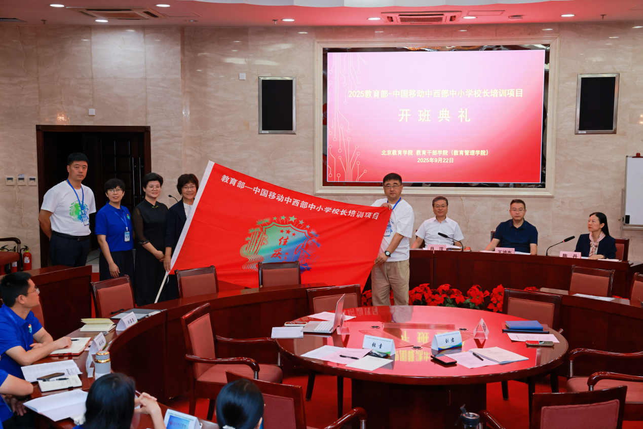 9月22日,教育干部学院在教师大厦百人讲堂举行2025年教育部-中国移动中西部中小学校长培训项目开班式。北京教育学院党委常委、副院长肖汶,教育干部学院党总支书记王鸿杰,教育干部学院校长发展研究中心主任、项目首席专家胡淑云教授,教育干部学院国际课程研究中心主任、项目执行负责人王晓玲博士,佳木斯和大庆两地的培训负责人,项目团队成员及全体项目学员60余人参加开班式。开班式由教育干部学院副院长陈丹主持。