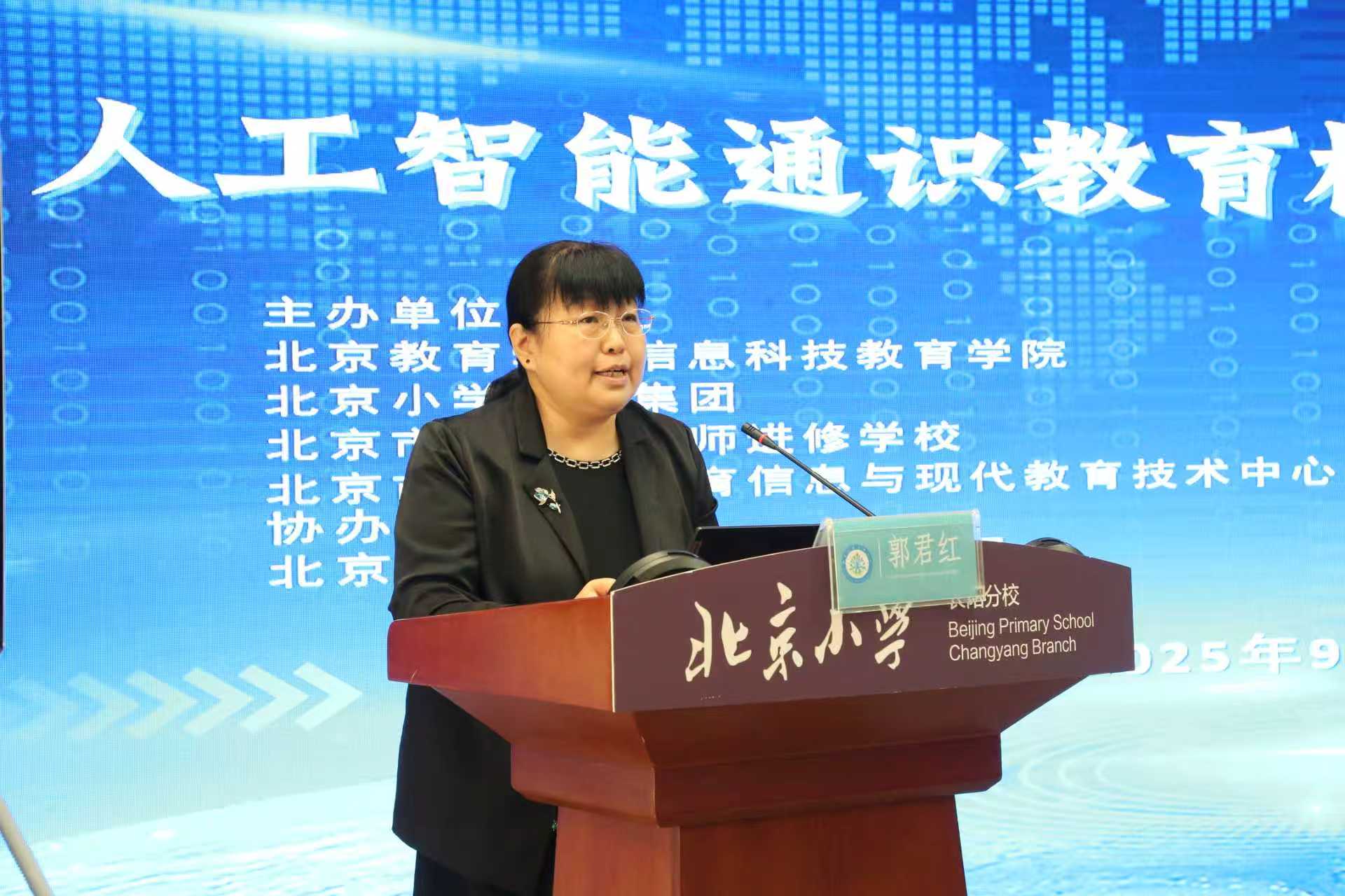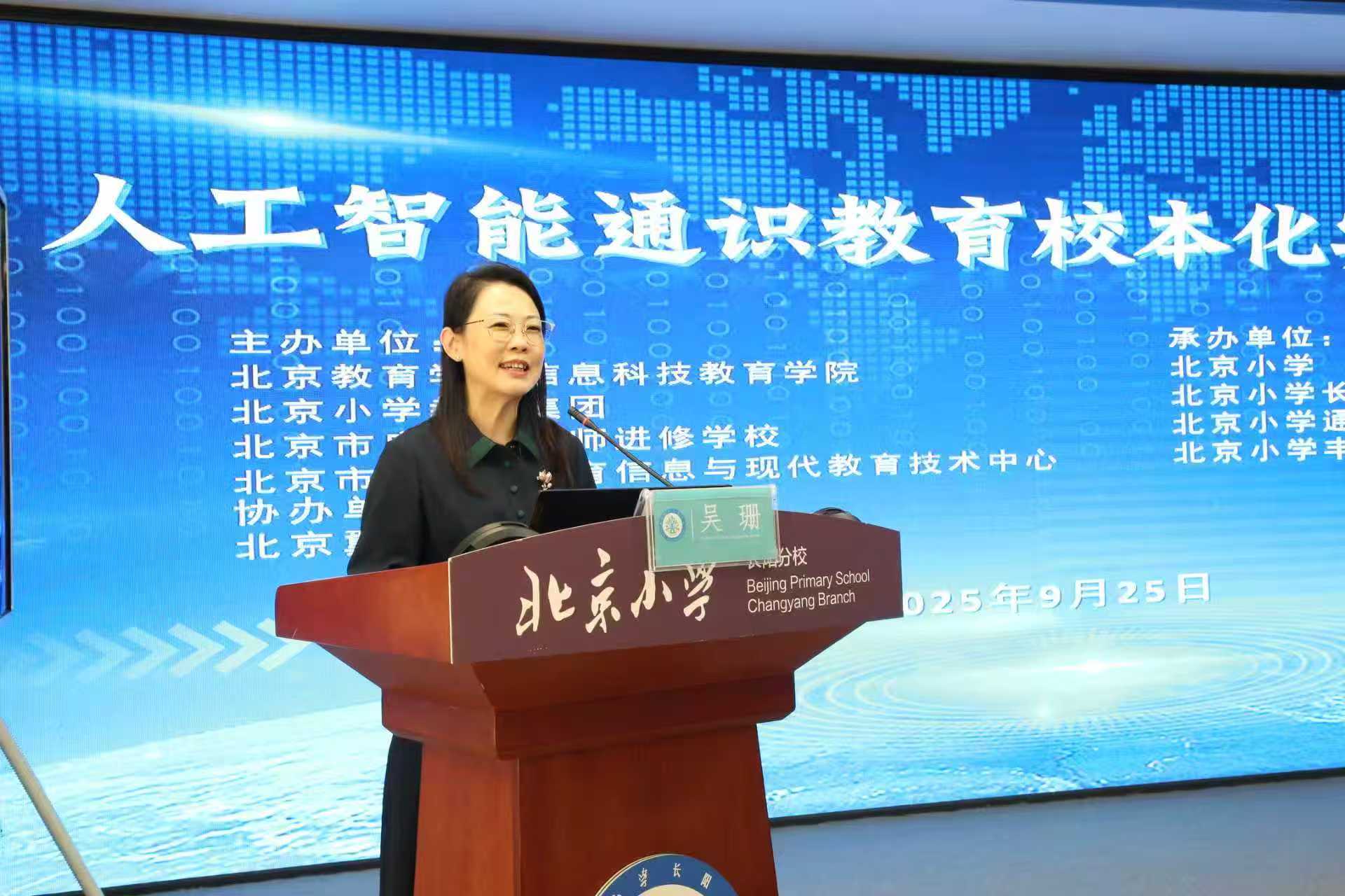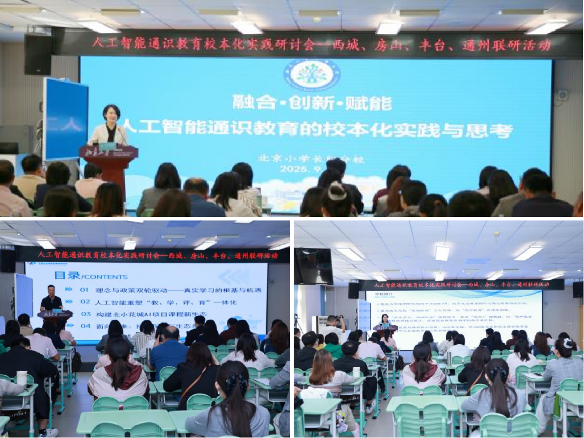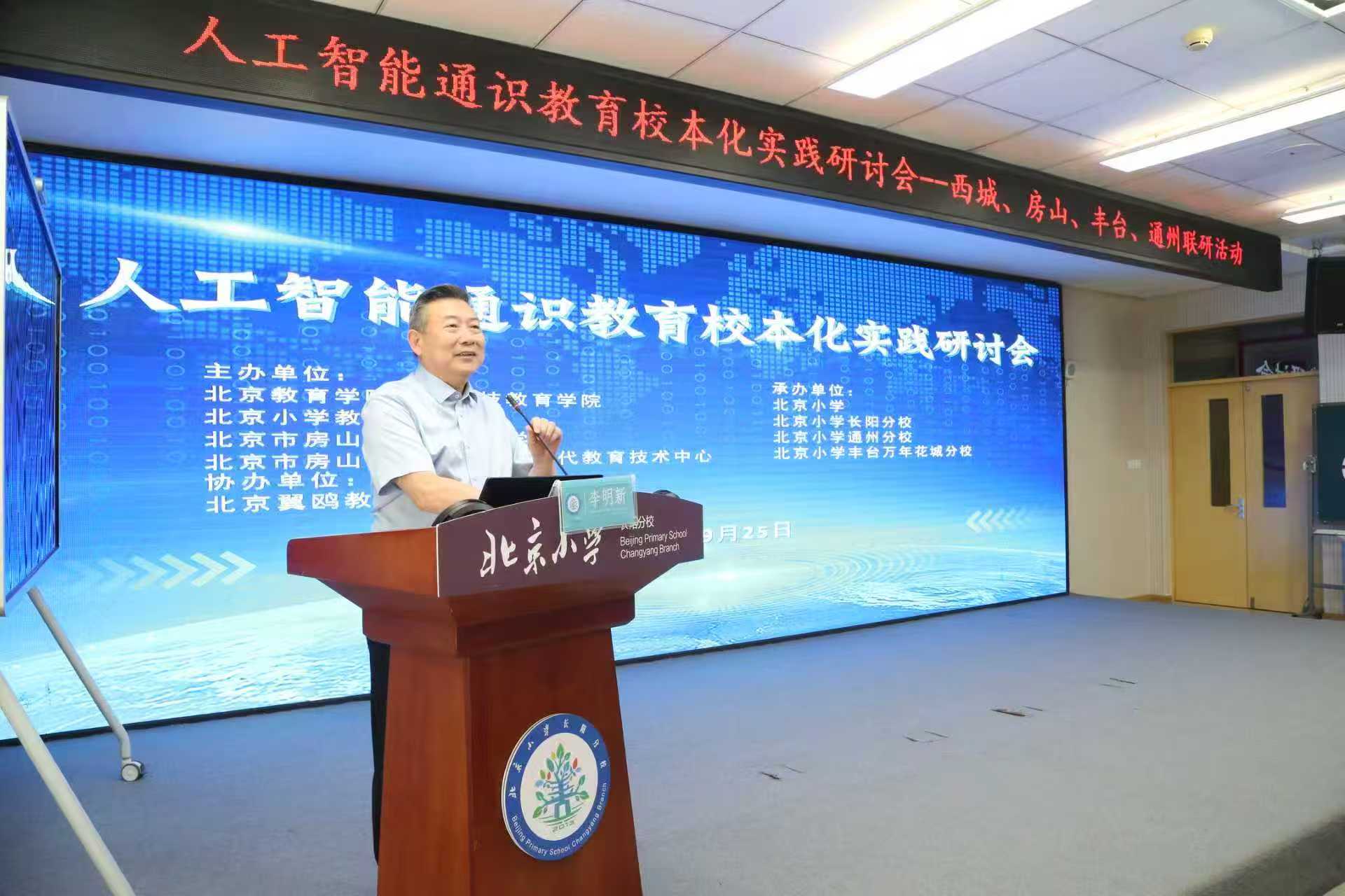 2025年9月25日,北京教育学院协同创新项目“基于教学改革融合信息技术的新型教与学模式实践探索”在北京小学长阳分校成功举办“人工智能通识教育校本化实践研讨会暨西城、房山、丰台、通州联研活动”。此次研讨活动由北京教育学院信息科技教育学院、北京小学教育集团、房山区教师进修学校、房山区教育信息中心主办,由北京小学长阳分校、北京小学通州分校和北京小学丰台万年花城分校承办。活动旨在通过区域交流,汇聚智慧、共享资源,展示协同创新项目典型成果,总结协同创新实践经验,共同探索可推广的人工智能教育实践新模式,构建赋能未来教育的新生态。活动同步线上直播,线上线下八百余人参会。