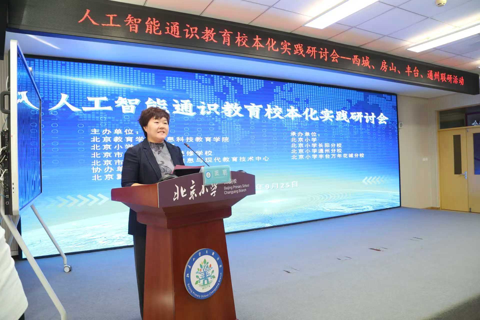 北京教育学院信息教育系主任、协同创新项目负责人郭君红介绍了协同创新项目在房山区开展的基本情况与主要成效,指出本次研讨会以协同创新项目为纽带,旨在聚焦人工智能通识教育校本化实践,搭建交流平台、共享实践经验。