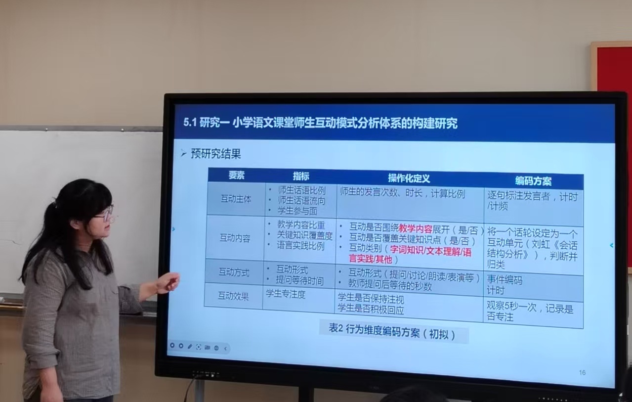 随后进入开题报告环节,2025年院级青年专项课题《基于复杂动态系统理论的小学语文课堂师生互动模式研究》负责人张了原老师,从课题研究背景、核心概念界定、研究目标与内容、研究思路与方法、预期成果与创新点等方面,全面阐述课题研究框架与推进计划。专家团队围绕研究设计的科学性、研究路径的可行性展开细致问询,针对“复杂动态系统理论与小学语文课堂的适配性”“师生互动模式数据采集与分析方法”等关键问题提出建设性建议,助力课题进一步完善研究方案,为后续顺利开展筑牢根基。