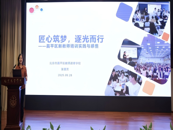 北京市昌平区教师进修学校师训部主任张丽芳、北京市西城区教育研修学院管理处副主任李玮围绕“市-区-校”三级协同新教师培训体系及“启航杯”活动组织经验进行交流分享。