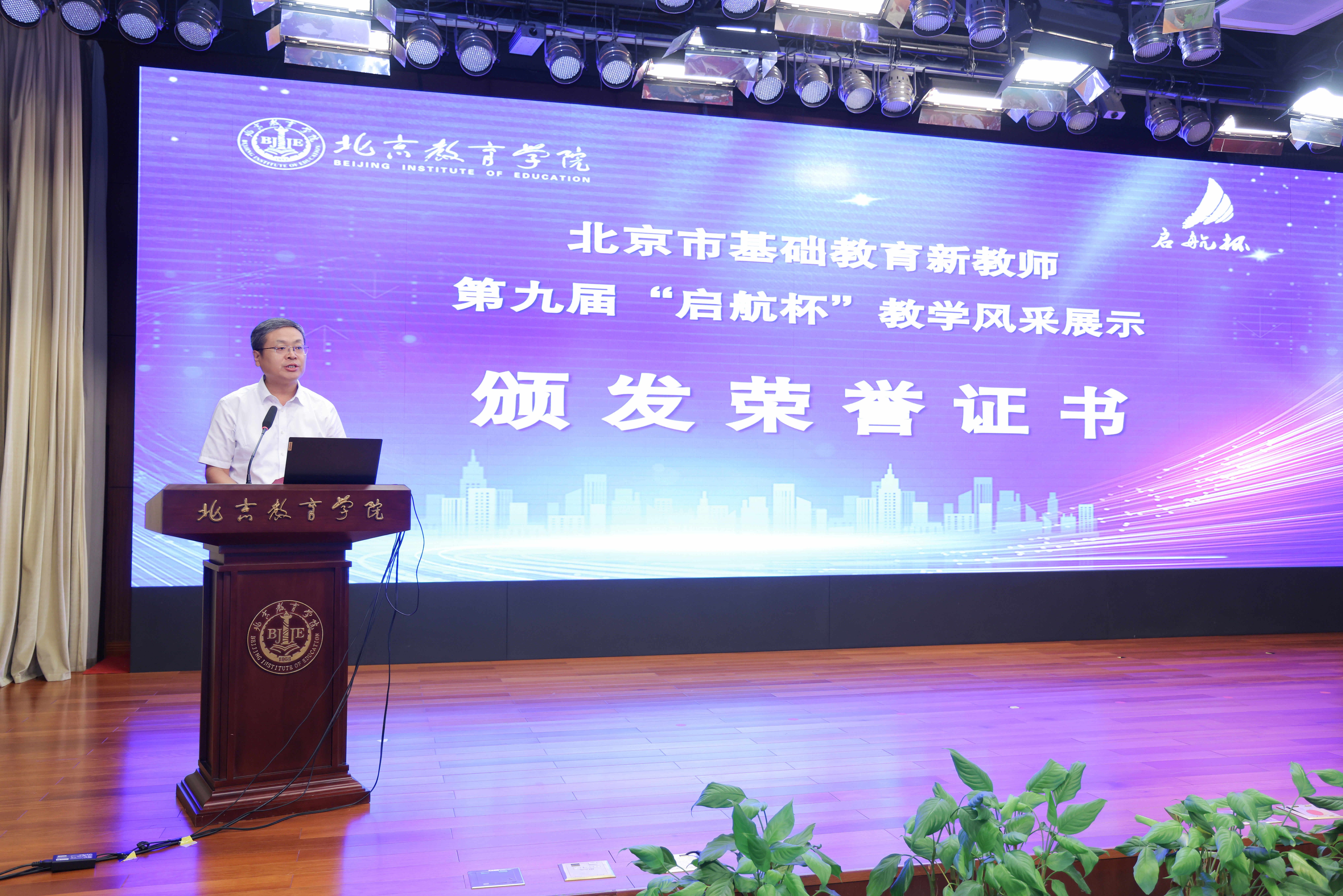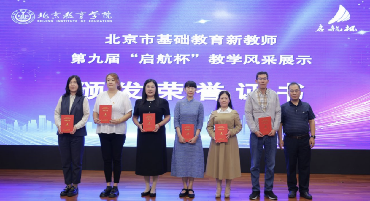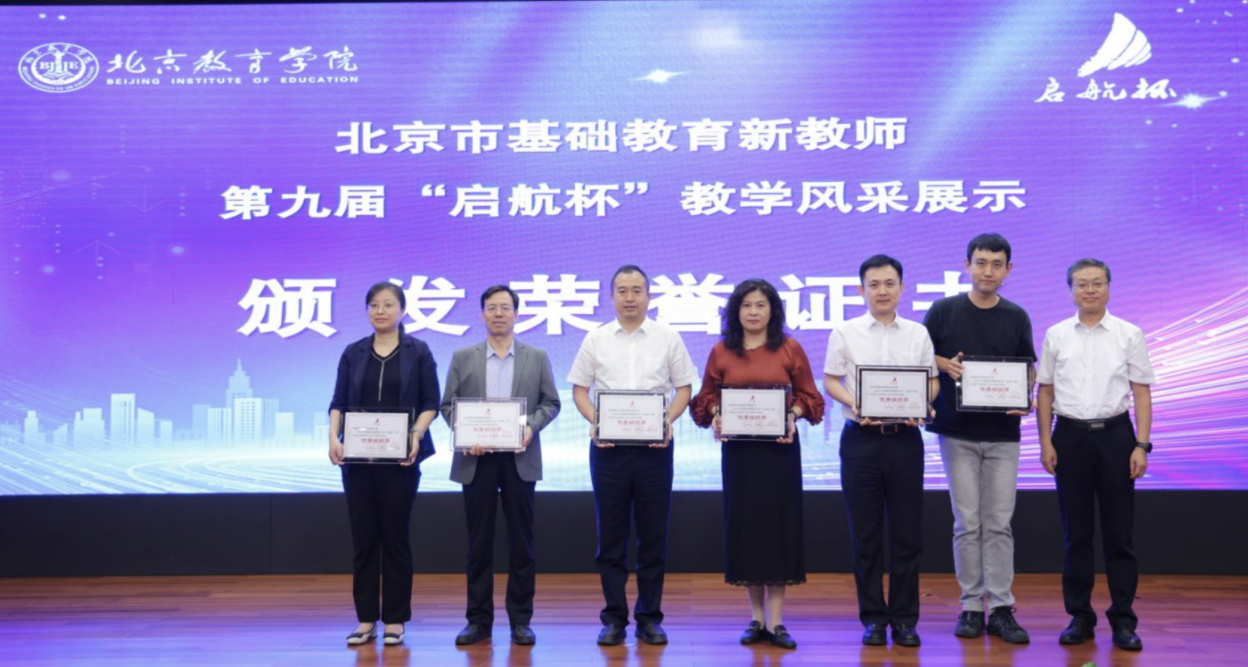 北京教育学院党委常委、副院长肖汶宣布《关于颁发北京市基础教育新教师第九届“启航杯”教学风采展示活动相关奖项的决定》,大会颁发优秀组织、优秀指导教师、优秀选手荣誉证书。