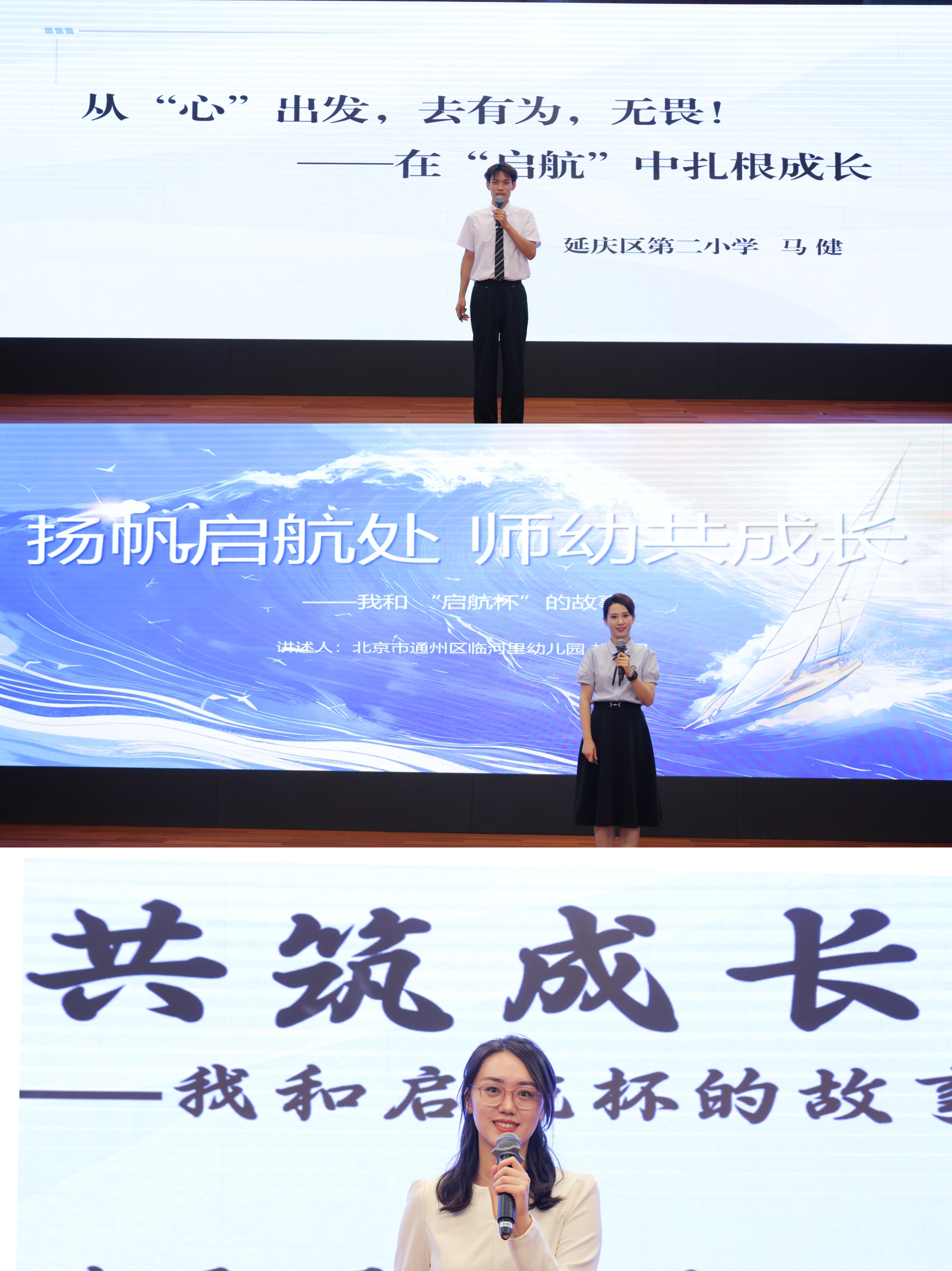 来自不同学段、不同区域的三位新教师——北京市延庆区第二小学语文教师马健、通州区临河里幼儿园教师胡贝贝和朝阳区北京中学生物教师孙莉,围绕“我与‘启航杯’的故事”主题展开分享。结合自身教育教学经历,从基础教育不同领域视角,生动展现了“启航杯”对提升教师综合素养、推动教育教学创新的重要价值,为深化首都基础教育高质量发展注入鲜活力量。