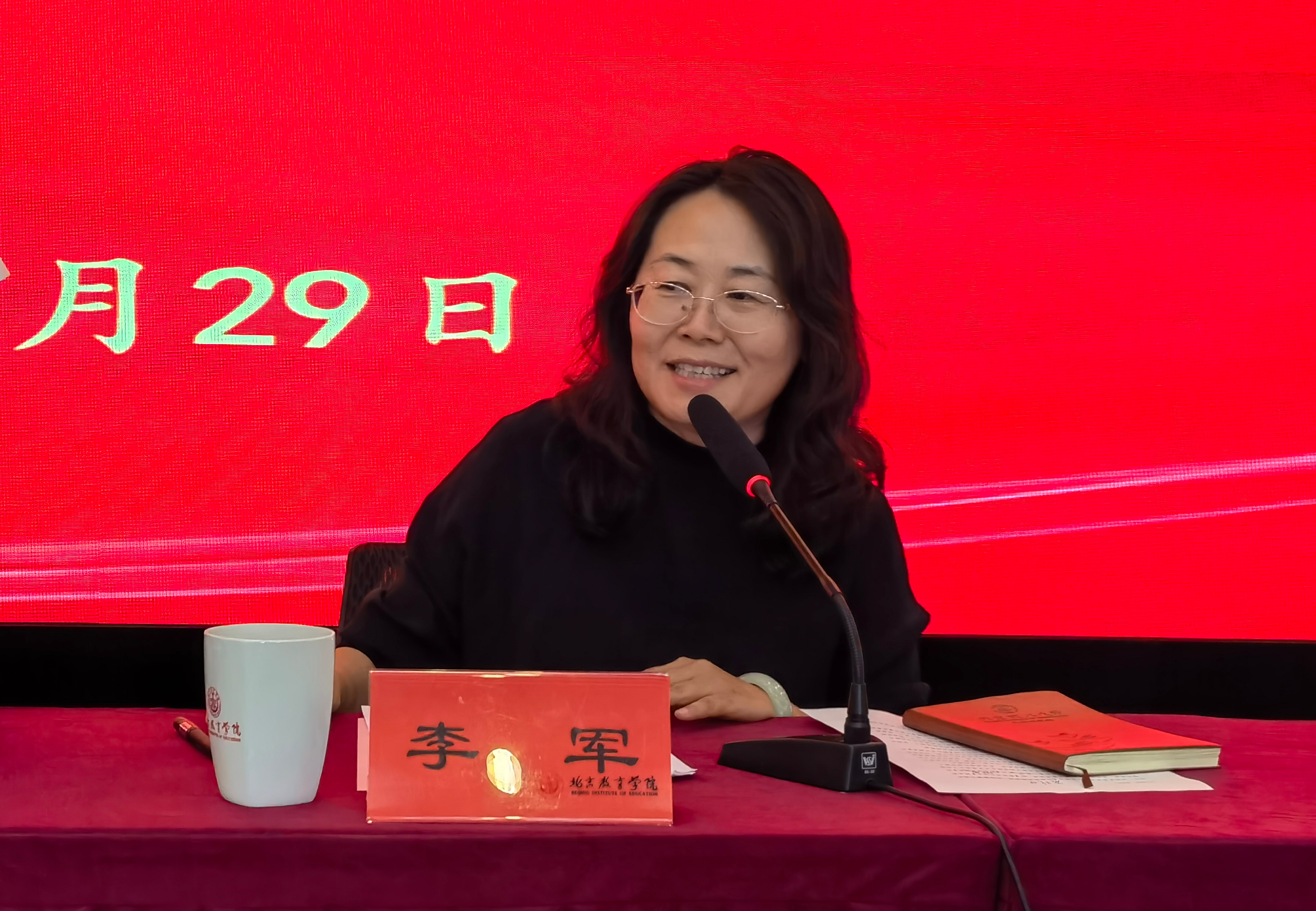 学院党委常委、副院长庞成立对人文学院新班子提出明确要求与殷切期望。他强调,全体教职工要切实将思想和行动统一到学院党委决策部署上来,凝心聚力、协同奋进,在新班子的带领下共同开创学院工作新局面。围绕学院未来发展,他提出三点要求:一是把准育人方向,淬炼师者初心。要始终坚持社会主义办学方向,深入践行“为党育人、为国育才”的初心使命,积极探索党建与业务“一融双高”有效路径,深化课程思政建设,大力弘扬教育家精神,抓好师德师风建设。二是聚焦主责主业,深化综合改革。要紧扣教师培训核心职责,主动适应教育综合改革与科技革命新趋势,创新培训模式,遵循教育规律,强化“研训一体”,着力打造特色品牌,以高水平科研教研支撑学院向“一流学科、一流学院”目标迈进。三是展现新担当新作为,弘扬干事创业导向。要强化班子团结协作,严格执行民主集中制,扎实做好新时期的群众工作;同时要严守廉洁底线,认真履行“一岗双责”,持续涵养风清气正的育人环境。他最后希望,人文与外语教育学院在新班子带领下,赓续教育家精神,聚焦主业、砥砺前行,为谱写北京教育学院事业发展新篇章,服务首都教育强国首善之区示范区建设作出更大贡献。