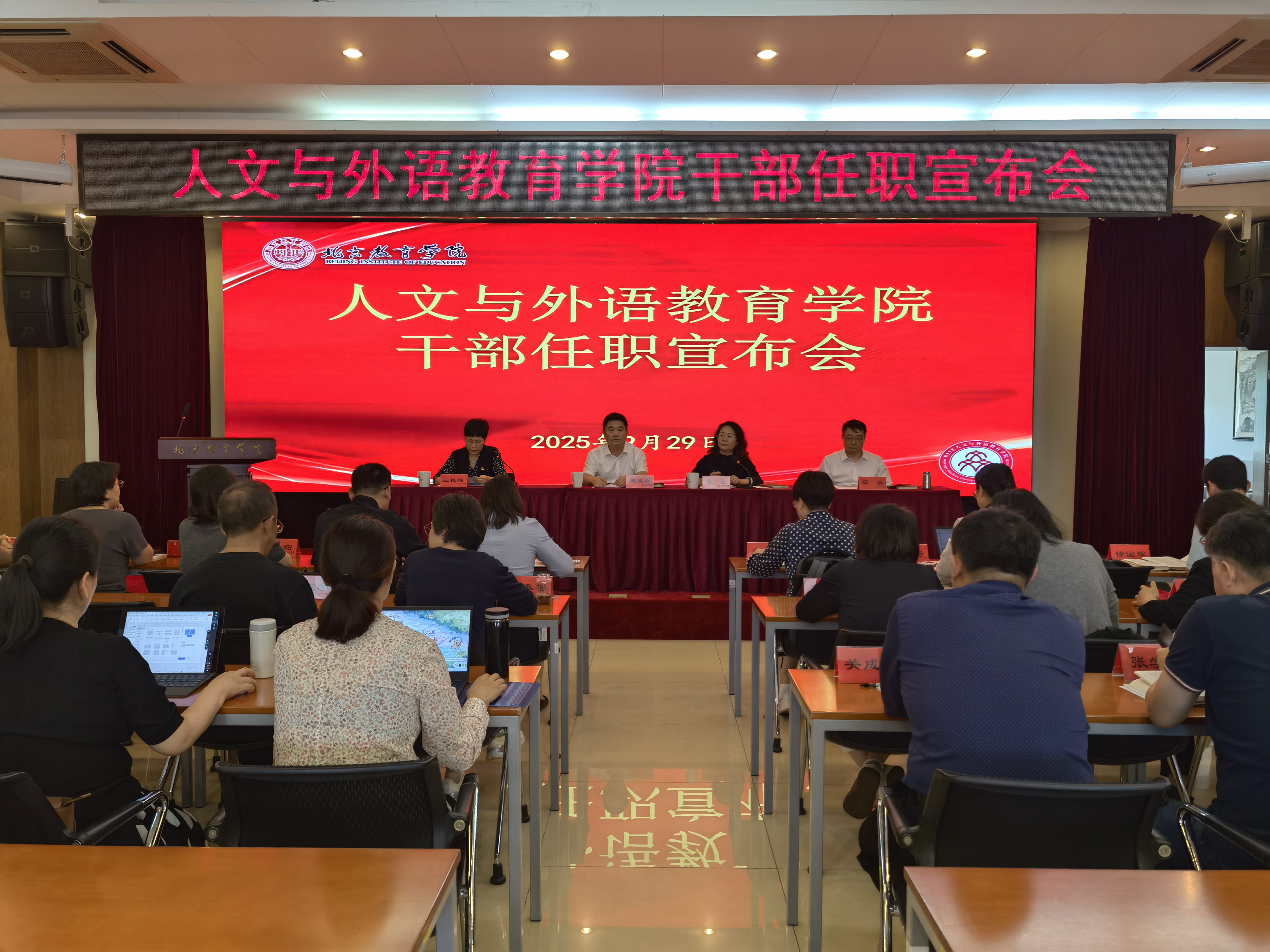 9月29日,人文与外语教育学院召开干部任职宣布会。学院党委常委、副院长庞成立出席会议并讲话,党委组织部部长李军主持会议。人文学院领导班子成员及全体教职工参加会议。