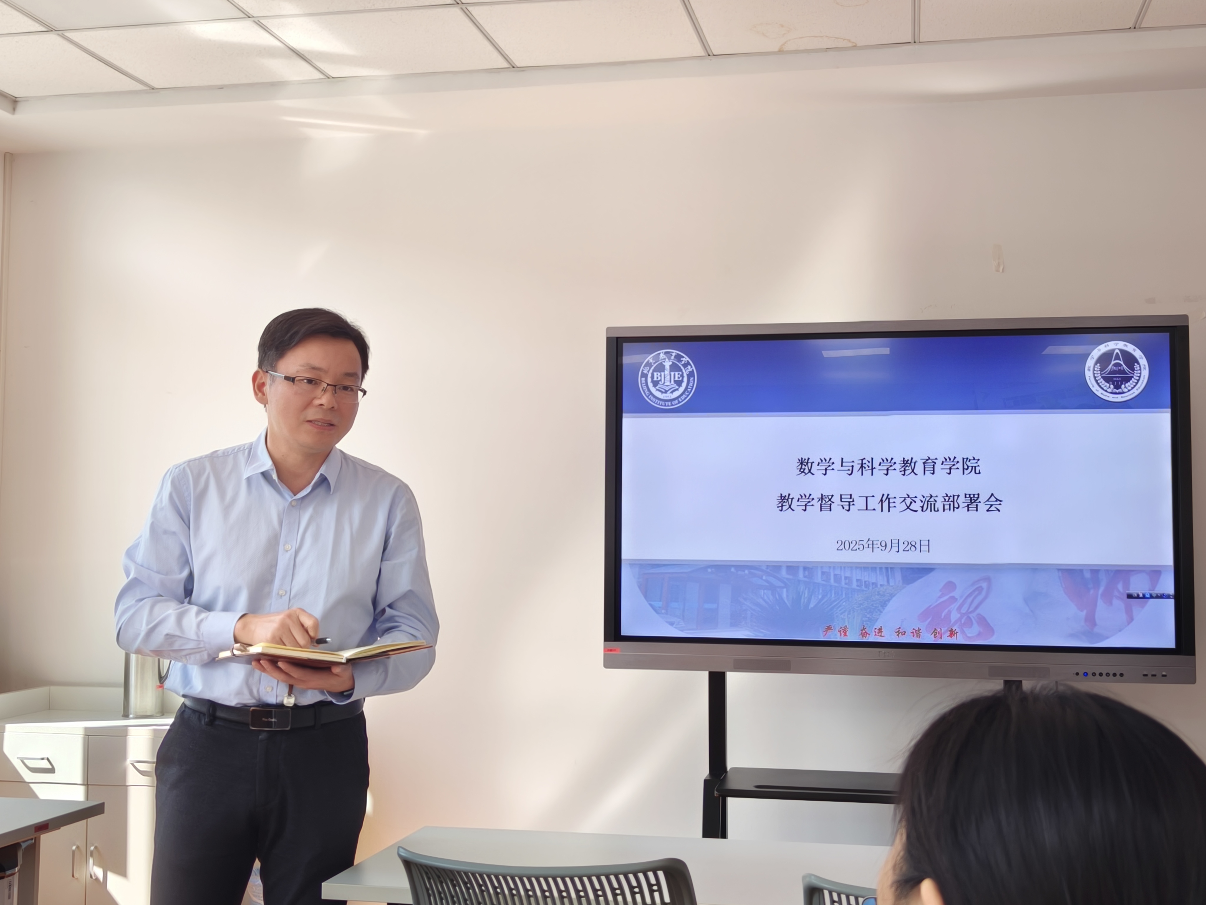 为全面落实教学督导职责,精准把握新学期教学工作重点,持续提升人才培养质量,数学与科学教育学院于 9 月 28 日上午 10:00 召开秋季学期教学督导工作交流部署会。数科学院班子成员、二级教学委员会委员及综合办教学管理人员参会,会议围绕督导重点任务明确、问题反馈交流、新学期工作优化调整等核心议题展开。会议由数科学院副院长邓靖武主持。