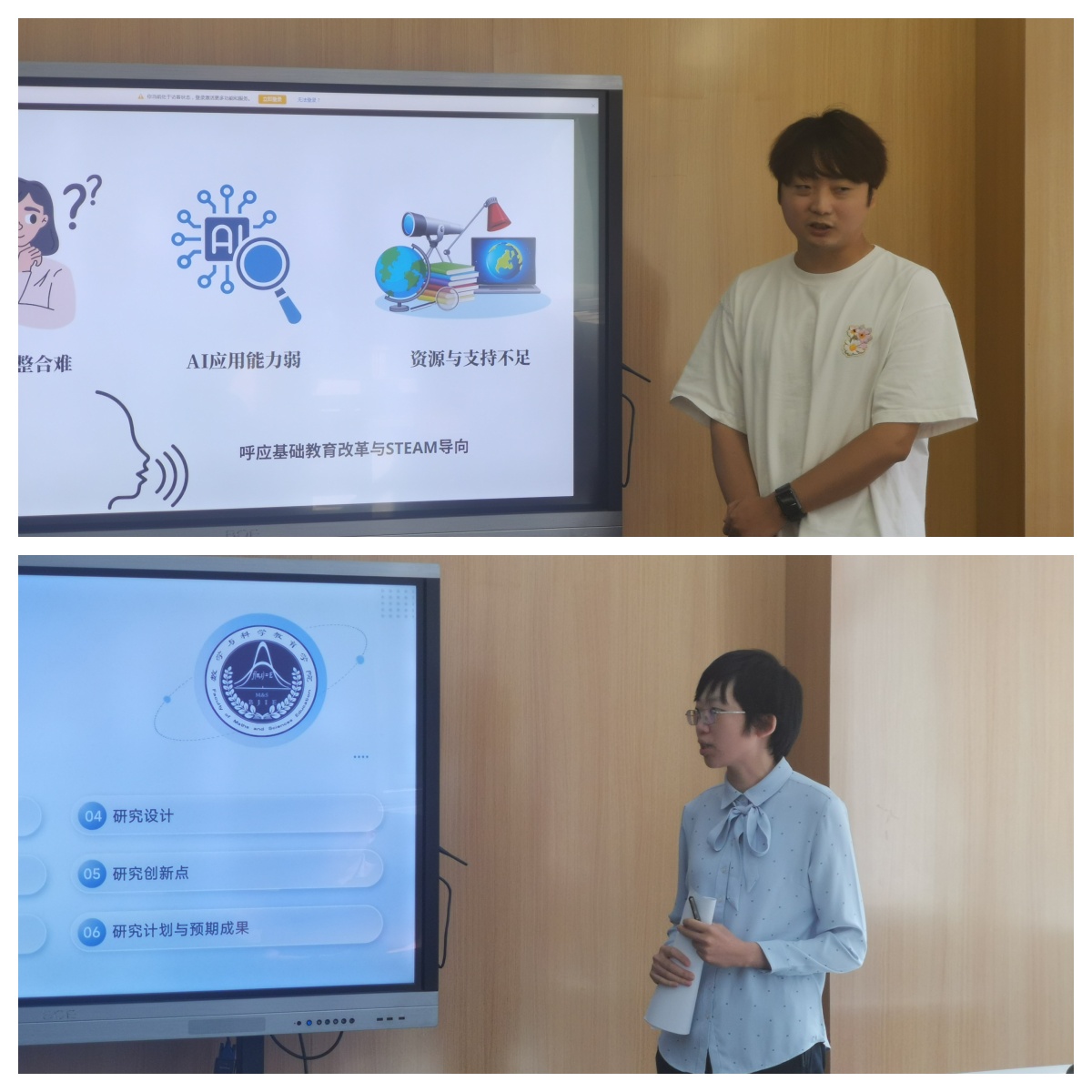 四位专家肯定了两位博士的研究意义和创新,认为他们立足教学实践中的痛点,能够结合自身专业优势开展切实可行的实践研究,同意开题。同时专家们建议,要根据课题研究的整体计划推进课题研究进度,研究内容要适当收束和精简,以小见大,更好的如期完成课题。专家们还就两个开题报告的撰写细节提出了改进建议。