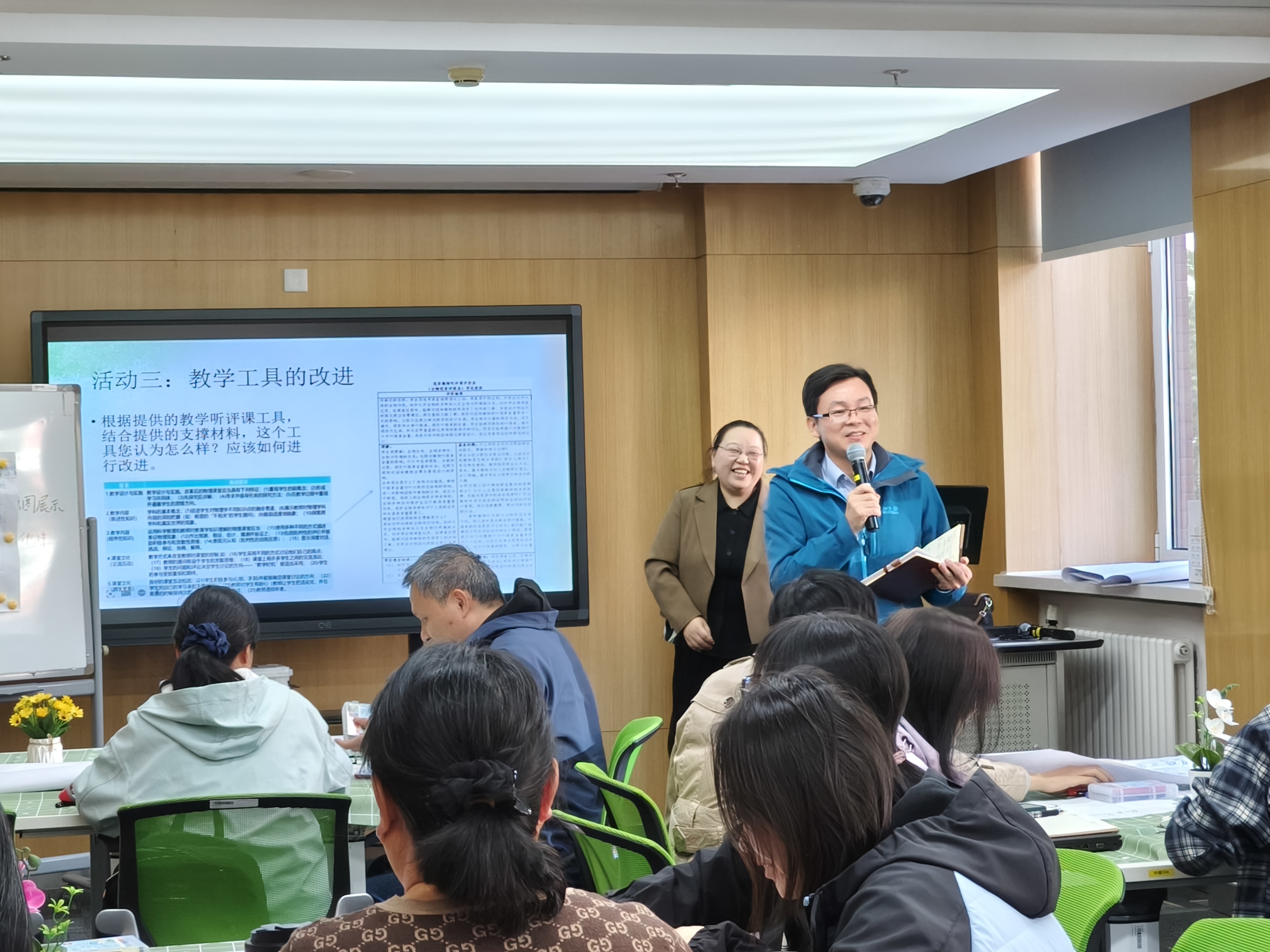 在教学工具改进环节,参会人员结合提供的教学听评课工具及支撑材料展开优化讨论。各小组代表发言提出,要基于细节操作行为设计多维度观测标准,明确评课工具需以问题导向与优质标准为核心,将评价标准从记录角度可视化,让课堂观察聚焦单要素,同时强调听课评价表的设计需兼顾教学指导价值与项目培训特色,突出行为指向维度。