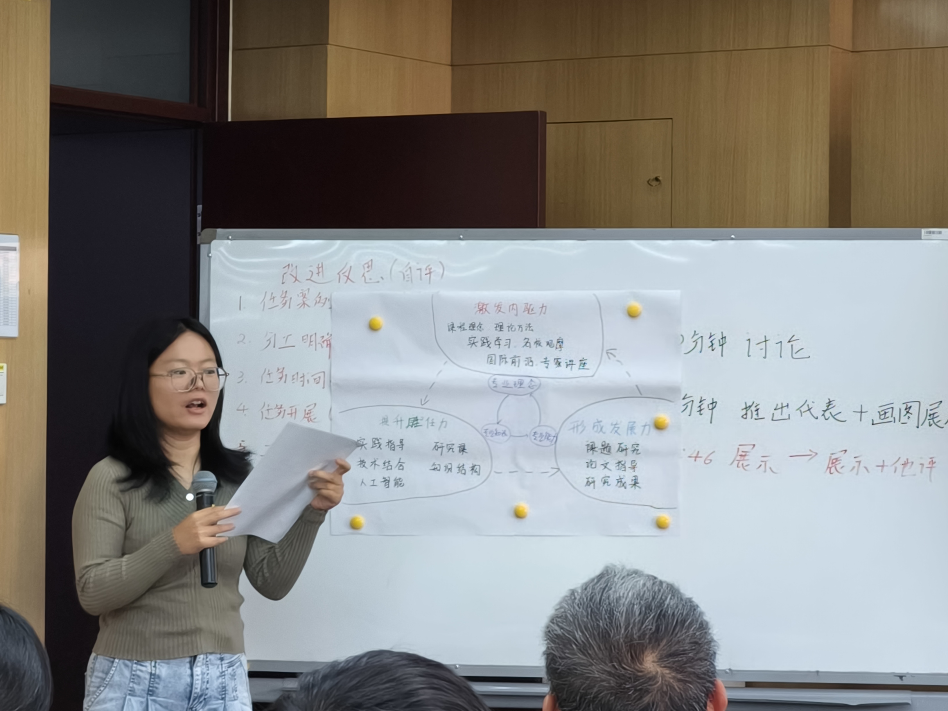 徐扬主任在点评中首先感谢学院提供的学习机会,并结合本次工作坊反思提出改进方向,后续会优先提供任务案例、明确分工、延长任务时间、细化任务开展流程,推动教学工具从单一维度向多维度迭代,强化工具设计的实用性。