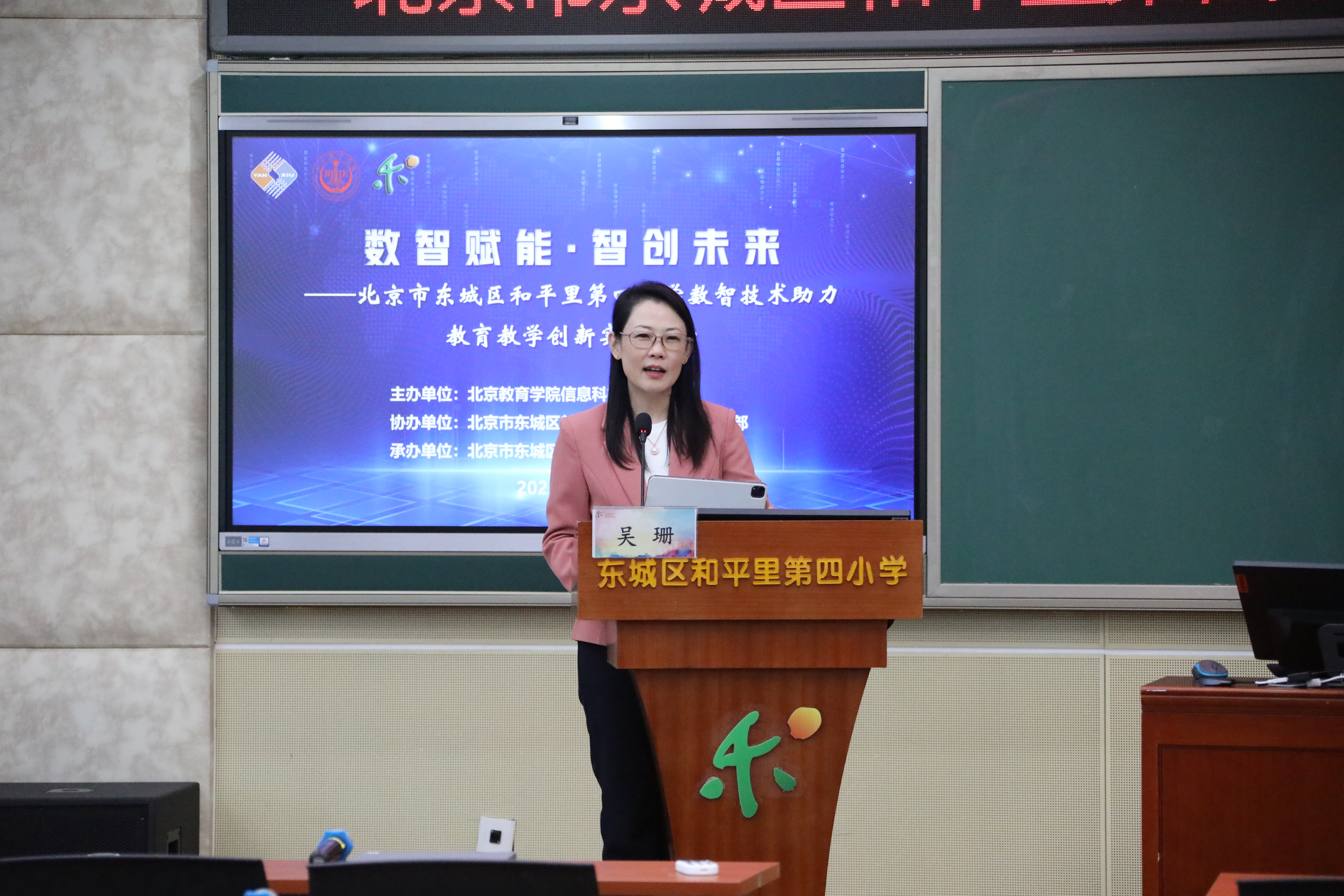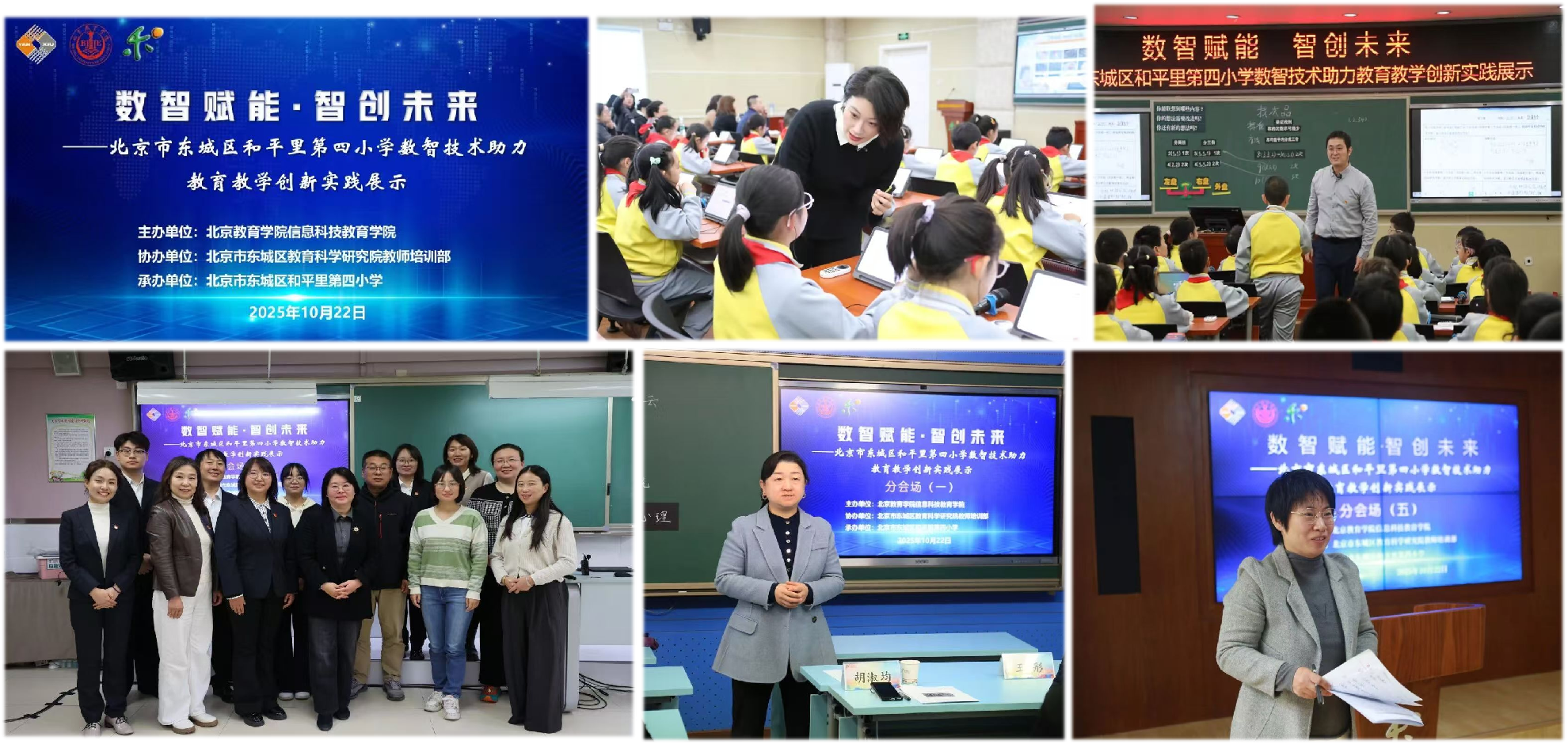2025年10月22日,由北京教育学院信息科技教育学院主办的“数智赋能・智创未来——数智技术助力教育教学创新实践展示”在东城区和平里第四小学成功举办。东城区教委副主任张燕,信息科技教育学院院长吴珊出席活动。北京教育学院优青项目“素养本位的‘AI+’跨学科主题学习设计与实施”项目负责人胡淑均及学员教师和东城区教委相关部门领导、高校专家与一线教师200余人现场参加了此次活动。
