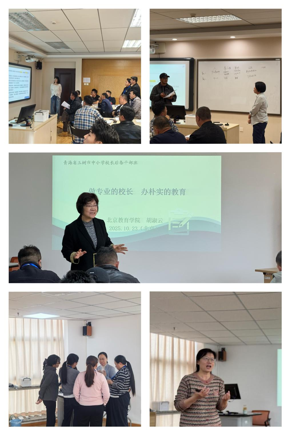 二、理论学习:高屋建瓴,启迪管理新思维 本次研修的理论模块学习部分主要包括三方面:一是对前期学员故事分享的深化,王志明博士做题为《管理案例与教育叙事撰写》的专题工作坊;二是强化领导者角色意识、思维及创新能力,项目首席专家胡淑云教授以《做专业的校长 办朴实的教育》为题,与学员进行深度交流,焦楠博士以案例分析切入点讲授《管理理论概述》一课;三是开展心理学课程学习,吕红梅副教授、崔艳丽教授分别带来《人格的发展与指导》和《学生情绪发展与指导》。专家讲座既有理论高度的讲解,又有实践案例的呈现,学员在开辟新视野的同时,也在思想碰撞中获得办学治校的新思路。