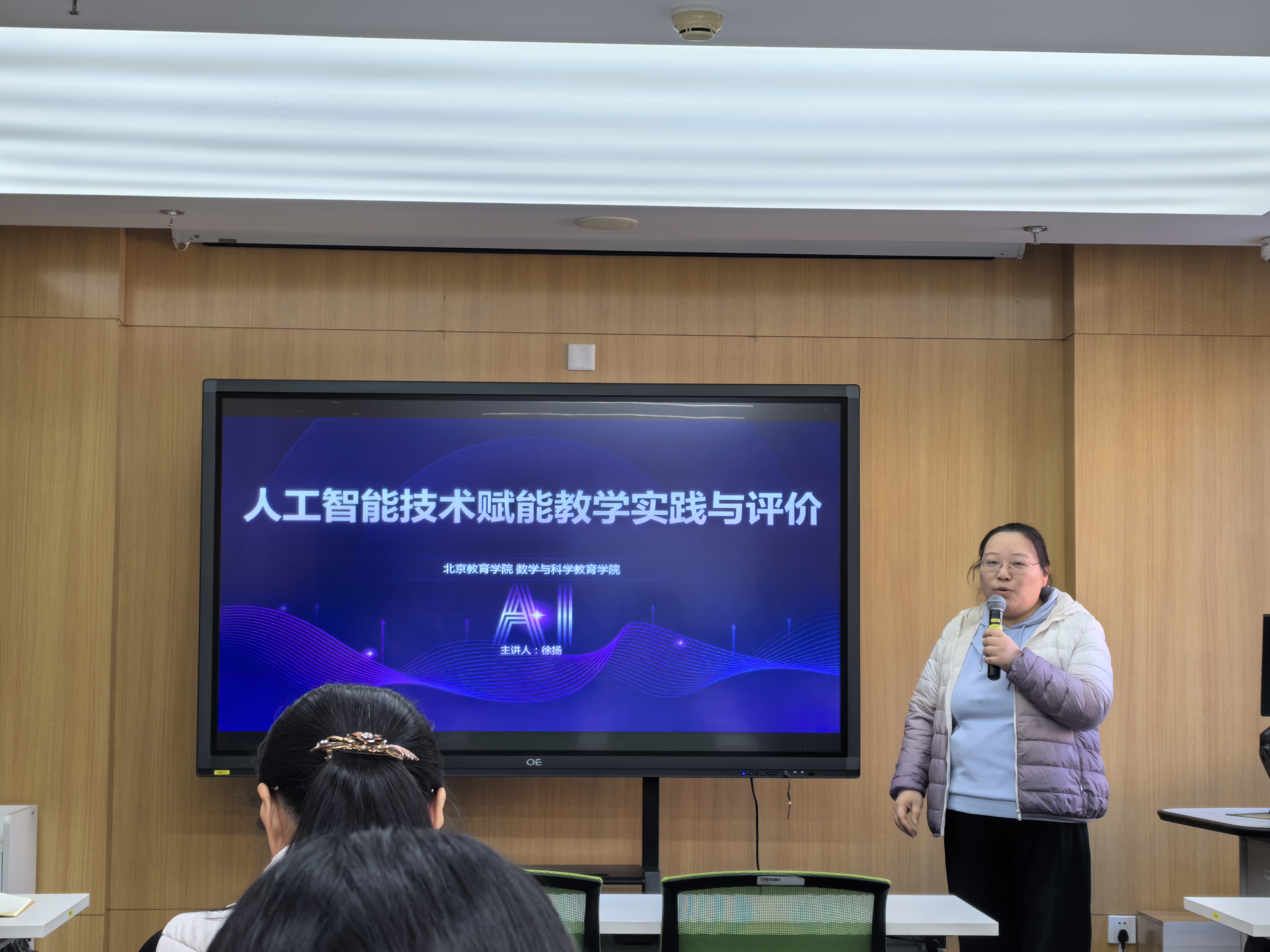 刘春艳副院长率先明确议题核心方向。她指出,人工智能融入中小学教育需牢牢把握三大关键原则:一是平衡教育技术与学科本质的关系,避免技术喧宾夺主;二是规范学生对AI的过度依赖,引导合理使用工具;三是构建高效且公平普惠的AI教育生态,助力教育均衡发展。她强调,数字技术正在以前所未有的速度、深度和广度融入教育,数科学院作为教育培训核心阵地,需主动担当、积极作为,推动技术与教育教学深度融合,为基础教育提质增效贡献力量。