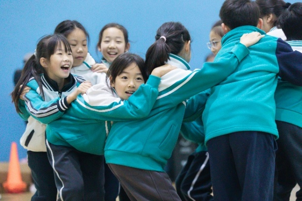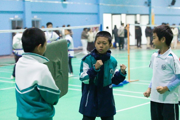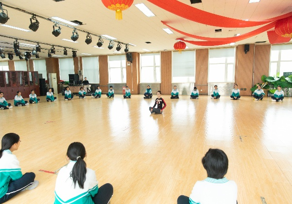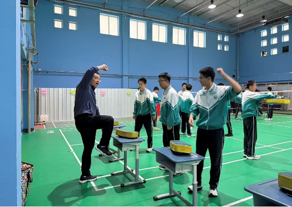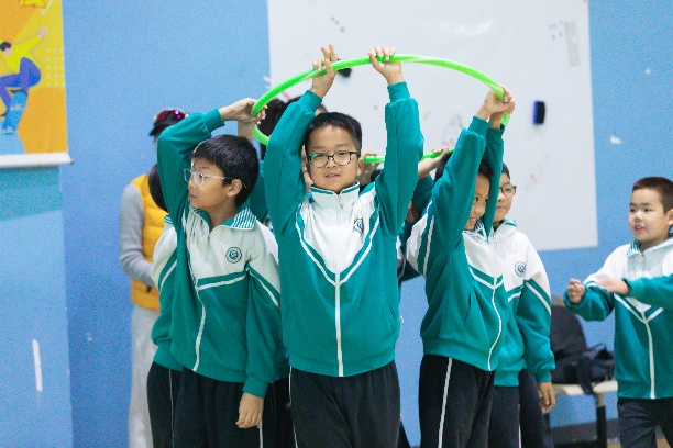 本次活动按学段分两部分有序开展:一是小学部的大课间主题实践活动,二是初中部的大课间主题实践活动。旨在通过多样化体育活动,将运动乐趣与心理疏导相结合,助力学生在运动中强健体魄、健全心智。活动设置了丰富多元的体验项目,涵盖酣畅玩耍、团体游戏,全员班赛,身体瑜伽,武术练功等,传统体育项目中国跤的加入更让学生感受非遗体育的独特魅力。活动当天因天气原因,部分项目迅速调整方案,将活动场地从室外操场紧急转移至体育馆内,高效的统筹协调确保了活动全程有序推进,未受天气影响。