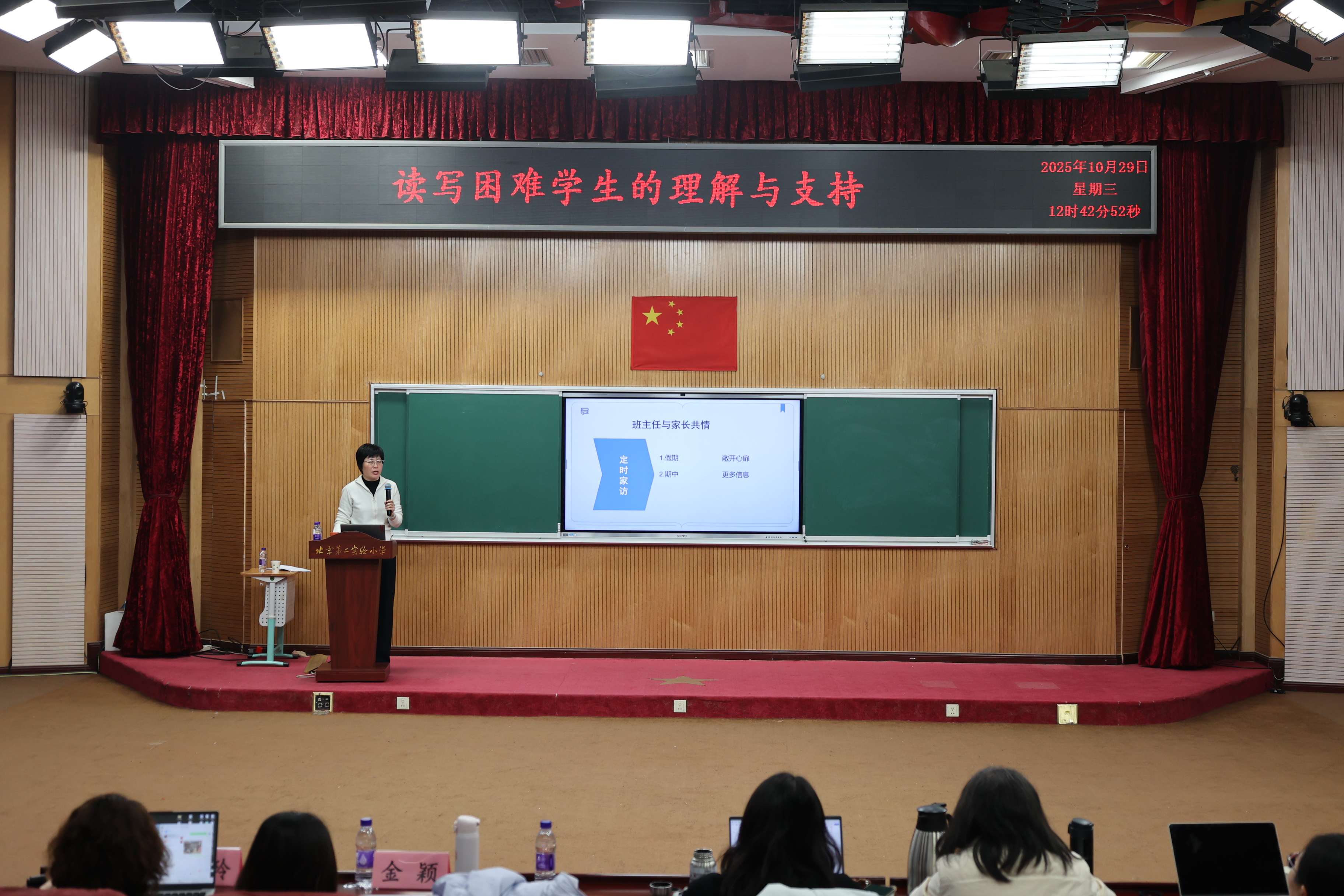 2025年10月29日,北京教育学院“北京市2025年小学心理教师特级工作室”在北京第二实验小学本校开展以《读写困难学生的理解与支持》为主题的学习活动。本次学习活动特邀北京市西城区教育学院融合教育中心“学习特殊需要教研组”教研员王玉玲及其团队进行授课及案例分享,北京第二实验小学德育副校长杨永敏、永定分校书记慈建芳参加本次活动。活动由项目负责人金颖老师主持。