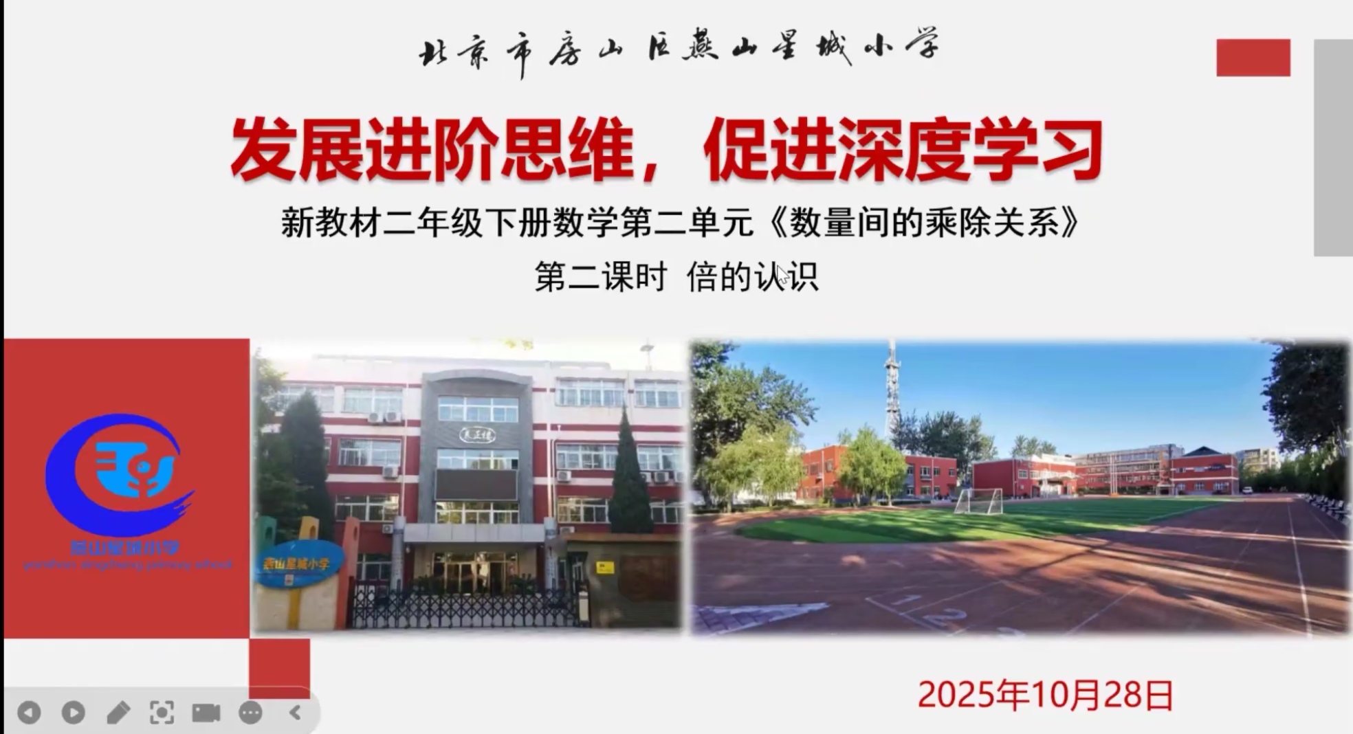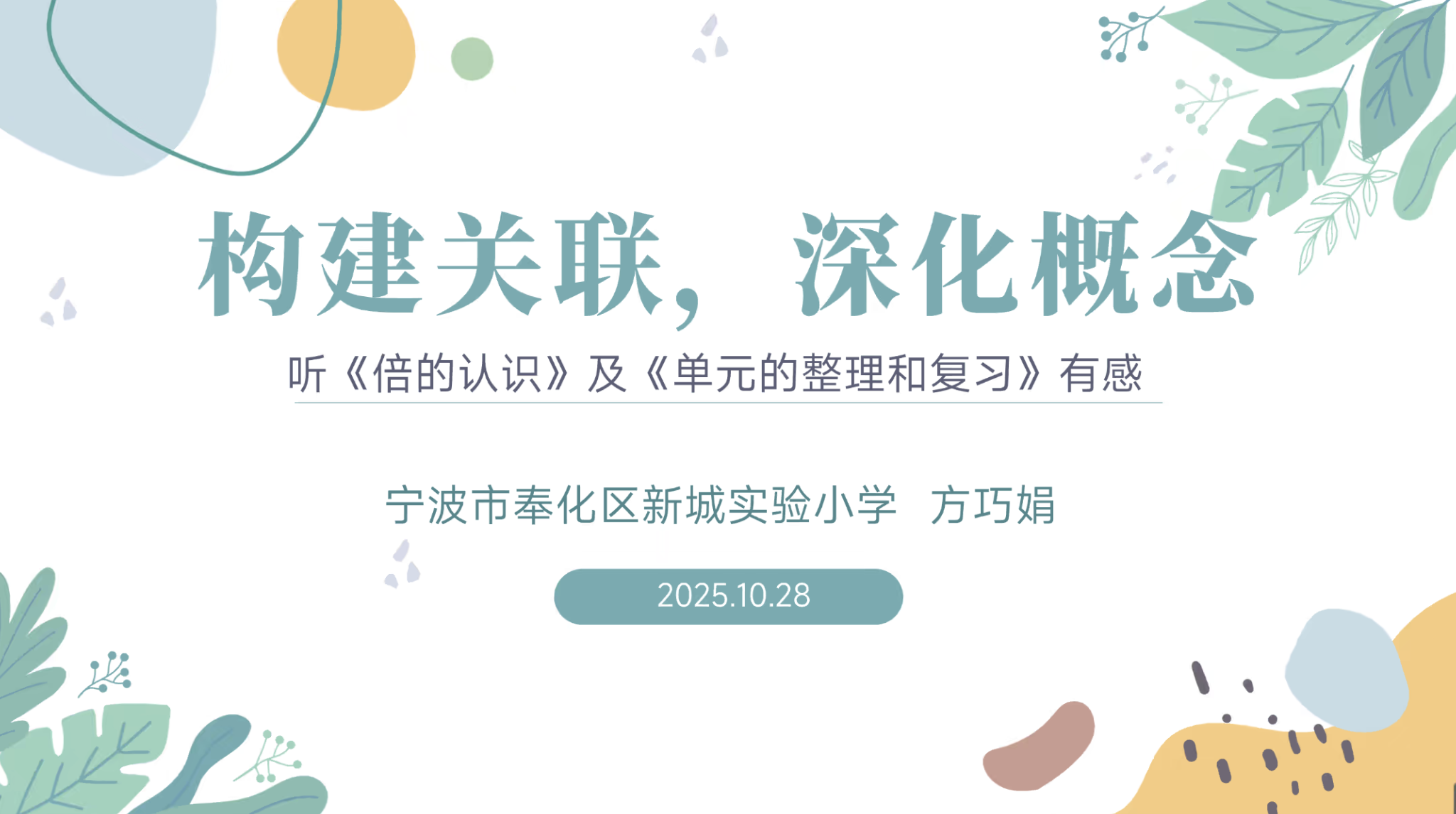 下午围绕“乘除间数量关系”单元,北京市房山区冯华一老师以从教材分析、学情分析、教学过程三方面对“倍的认识”内容进行说课,重点探讨“如何促进对概念的理解”“如何达成思维的进阶”“如何培养模型意识”三大核心问题,呈现了“实物感知-图像表征-符号表达”的进阶链条。宁波市奉化区龙津实验学校邬盼盼老师分享“数量间的乘除关系整理复习课”的教学思考,先呈现单元知识结构图,再通过“分类梳理三类问题”“寻找三类问题之间的联系”“在检验方法中感悟三类问题的联系”三个活动,帮助学生内化倍数关系本质,体现“思维提升”的复习课设计理念。