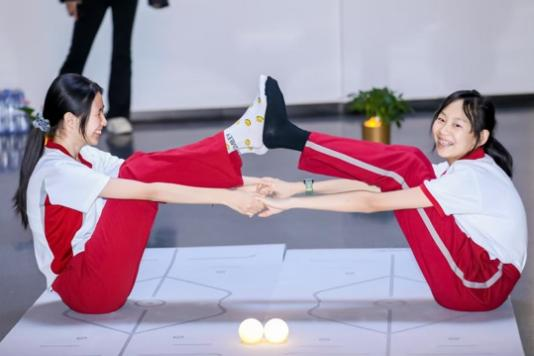 现场观摩环节设置了身体瑜伽、武术练功、酣畅玩耍、团体游戏、全员班赛五大主题活动。身体瑜伽由北京中学王钥琪、王紫毓老师负责,为女生营造宁静且充满信任的练习氛围,通过箱式呼吸、基础体式、双人瑜伽及冥想练习,搭配信任之桥等协作动作,帮助女生在身心舒展中建立联结;武术练功由梁攀攀、侯雪萌老师主带,围绕双人角力激活、直拳转身横击等拳法、鞭腿顶膝等腿法、你攻我防组合及人靶练习展开,助力男生宣泄情绪、塑造阳刚气质,同步提升自信与协作力;酣畅玩耍由马双双、王泽文老师组织,以8-9个游戏串联的小组积分赛形式呈现,抢标志碟、极速翻转等项目让学生在 1 分钟内实现快速解压;团体游戏由马强、周硕、贾子豪老师策划,通过气球舰队攻防战等游戏的等时轮转竞技,将行为规范、人际构建融入趣味对抗,强化学生归属感与凝聚力;全员班赛由强光旭老师组织,五个班级学生分为两批依次参与旋风跑、营救队友项目,在跨班协作中深化团队意识、领悟共赢价值。