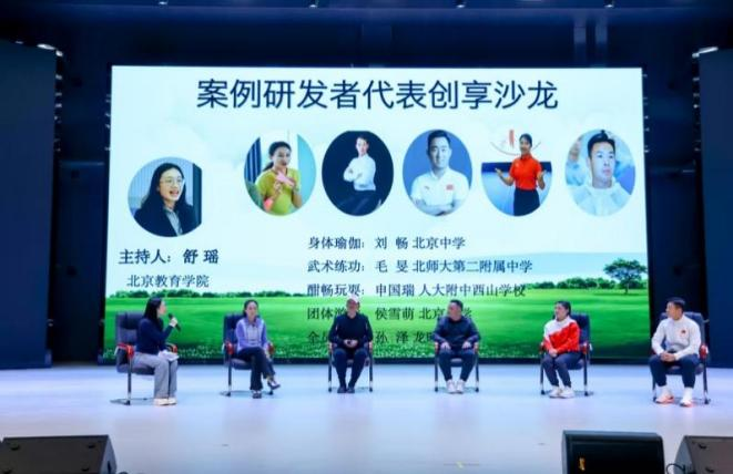 创享沙龙环节,五类主题案例研发者代表围绕《体育强心手册:场景育人促进心理健康155例》,分享创作初心与实践故事:身体瑜伽刘畅老师以“授人以鱼+授人以渔”平衡考前即时放松与长期心理受益,借简单呼吸与体式助学生快速静心,还谈及初三学生练习时潸然泪下的瞬间;武术练功毛旻老师依托神经学机制,以双人对抗激活前额叶、压制杏仁核,既保对抗性又避免攻击性,有效释压,同时分享了女生被项目吸引主动参与的故事;酣畅玩耍申国瑞老师的“信任同座”通过语言破冰、动作分解、团队鼓励化解信任缺失难题,讲述了与学生同玩的欢乐时光;团体游戏侯雪萌老师将规则守护者转化为游戏世界构建者,赋予学生规则修订权以平衡约束与趣味,还分享了把游戏带到贵州兴仁“圆梦行动” 的感人经历;全员班赛孙泽老师通过体育老师设计、学校统筹、班主任参与复盘、学生自主筹备、校长亲临颁奖的多部门协作,保障大规模活动有序落地、强化学生荣誉感,提及三年级学生在区抽测中创下学校历史最好成绩,学校领导认为全员班赛起到了关键作用。老师们的分享既聚焦贴合学生心理需求、破解成长困惑的设计思路,也传递着见证学生释压、增自信、学协作的温暖,让“体育强心”内涵更鲜活、“以体育人”思维更深刻,案例分享后,与会专家和教师畅谈体会、互启思路。