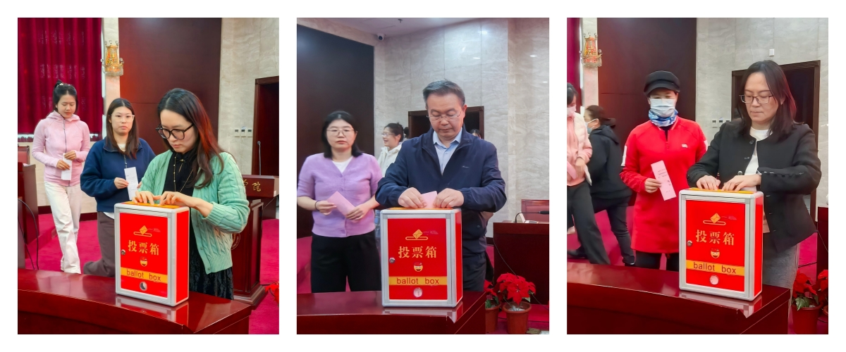 投票环节,工作人员现场清点人数、检查票箱、分发选票,整个过程规范严谨、公开透明。此次选举采用差额选举方式,严格遵循“到会人数达到本单位职工总数 2/3 以上方可选举,当选代表得票必须超过半数方为有效”的规定。与会教职工郑重投出自己的选票。