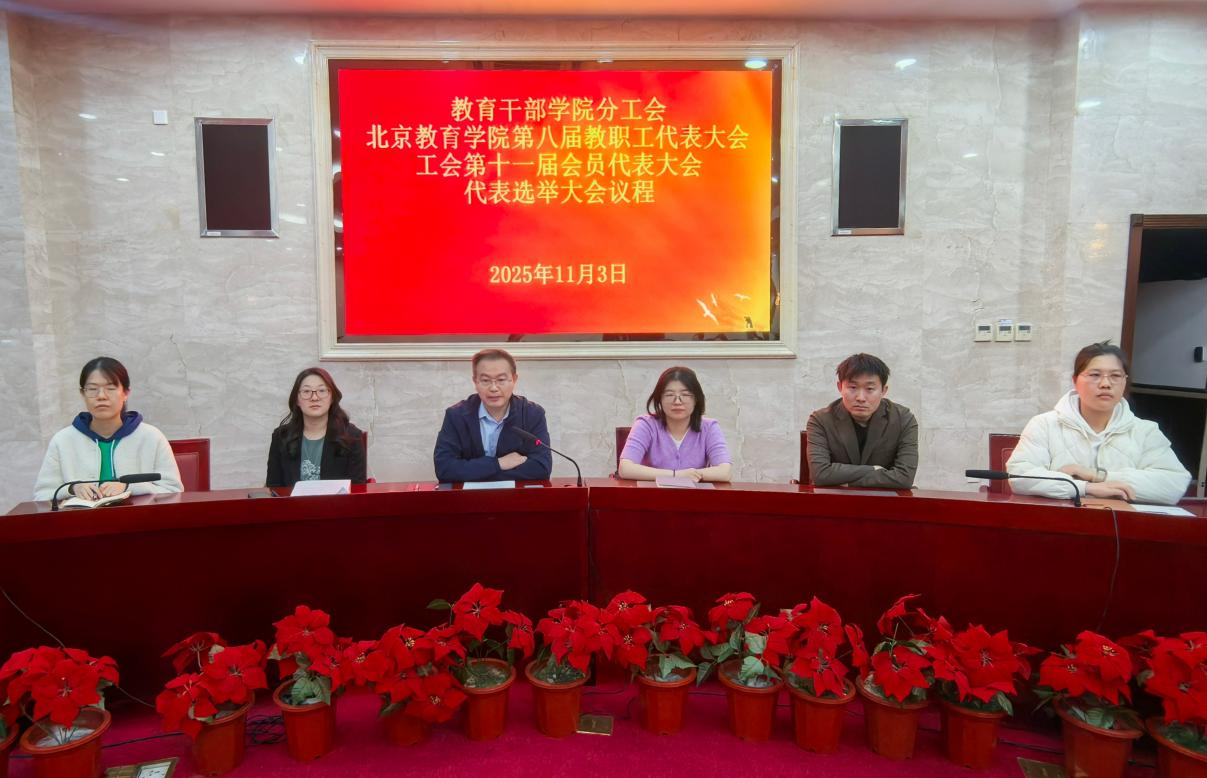 2025年11月3日下午,教育干部学院第八届教职工代表、第十一届工会会员代表选举大会在中轴路校区五层报告厅隆重举行。大会由教育干部学院分工会主席王鸿杰主持,全体教职工参会,参会人数符合法定要求,现场氛围热烈而庄重。