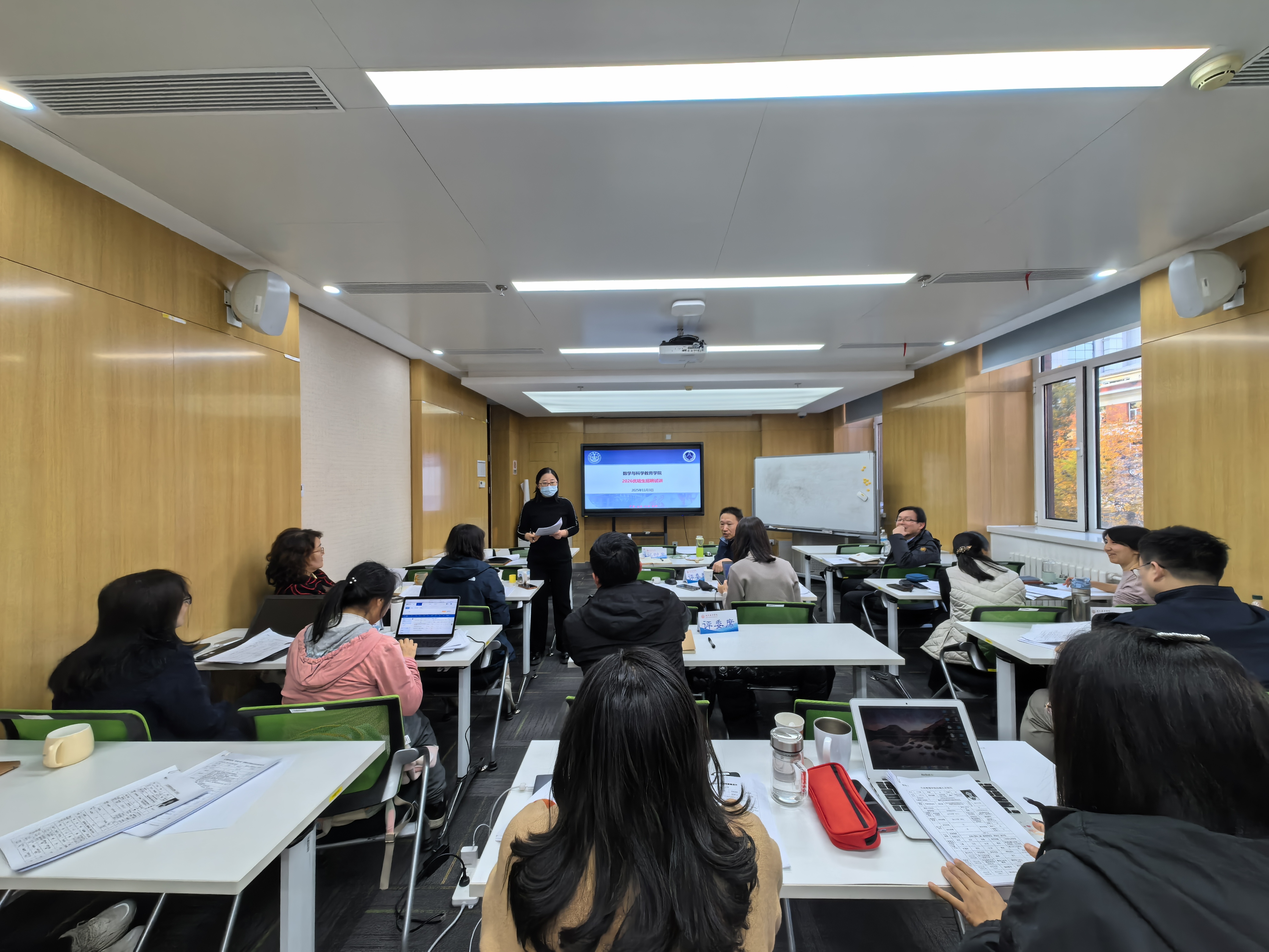 为严格落实人才选拔标准,充实教学科研人才队伍,数科学院按照《北京市2026年度定向选调和“优培计划”招聘应届优秀大学毕业生公告》及《北京教育学院2026年度“优培计划”招聘应届优秀大学毕业生公告》相关要求,于11月3日上午在文兴街校区开展2026年度公开招聘数学系教学科研岗位专业试讲考核工作。