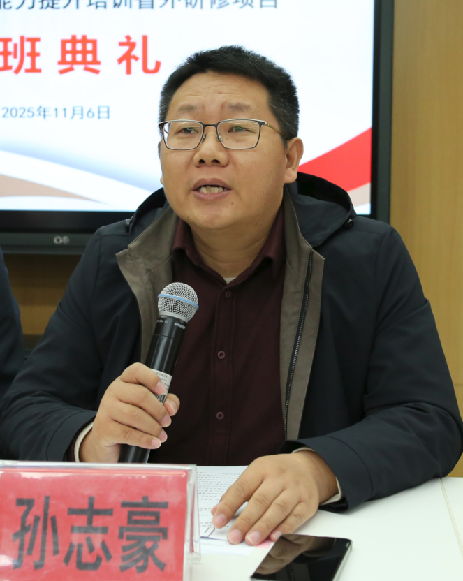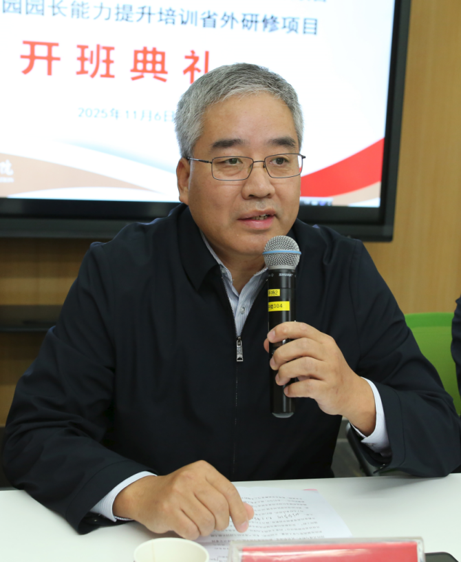 广东省外语艺术职业学院继续教育学院(广东省中小学教师发展中心和广东省学前教育师资培训中心)院长孙志豪在致辞中,对在本次研修活动中倾注智慧与心血、提供鼎力支持的北京教育学院各位领导、专家及研修团队工作人员表示诚挚的感谢,并表示此次研修合作是两校服务国家“一老一小”民生战略与粤港澳大湾区教育发展的重要实践。孙院长对参训园长研修提出三点期望,希望学员静心修业、求真悟道;知行合一、格物致用;共研共进、互鉴共生。
