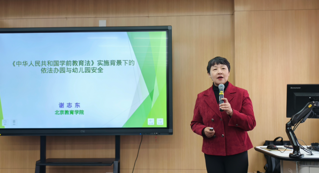 开班典礼结束后,项目负责人谢志东院长以“《学前教育法》实施背景下的依法管理与幼儿安全保护”为题,做一场兼具理论深度与实践指导意义的专题讲座。谢志东院长从《学前教育法》的立法背景切入,结合近年来学前教育领域发生的典型案例,深入剖析了法律对幼儿园管理、师资配备、设施安全、卫生保健等方面的具体要求。