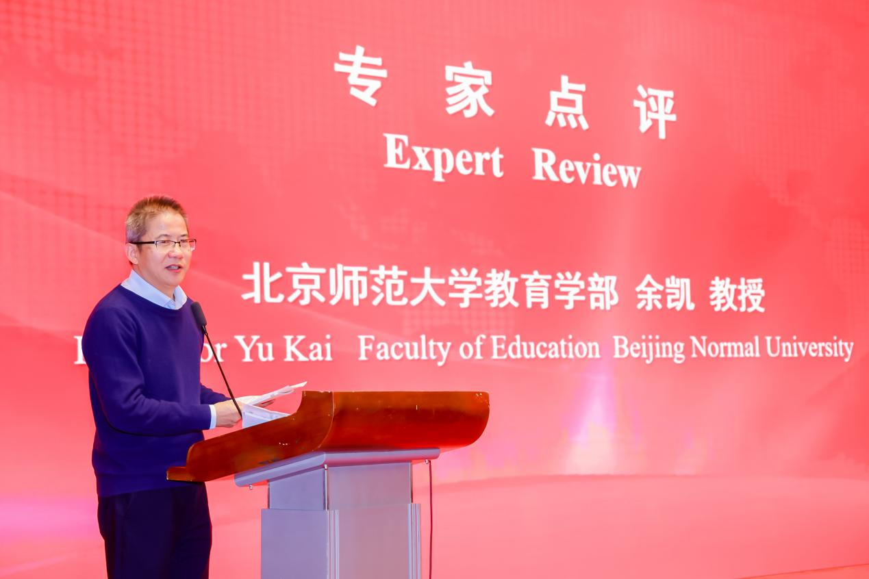 最后,北京师范大学余凯教授做出精彩点评。他谈到,本次论坛汇聚了来自教育各界人士的学术和实践智慧,全景性地剖析了人工智能对教师队伍建设的影响之道、之法、之术,并进一步凸显了,“联结与协作”在人工智能时代教育创新与教师专业发展中的重要意义与价值。